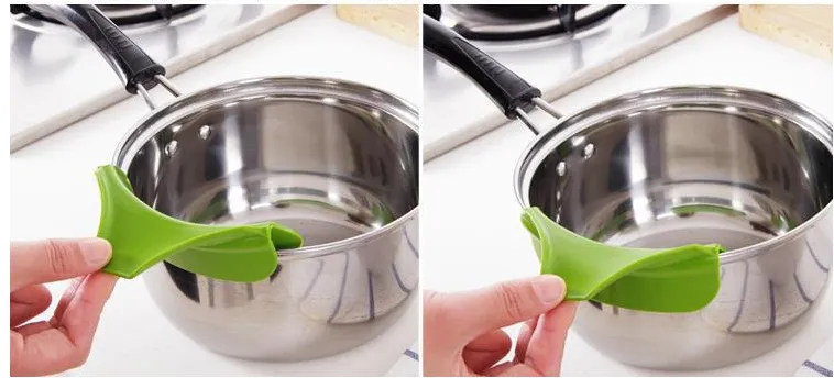 (5)Usage: Place the guide on the edge of the pot and pour it out slowly. The clamp is tight and not easy to fall off.