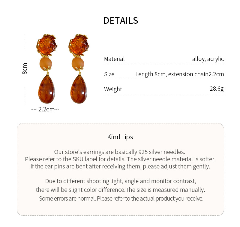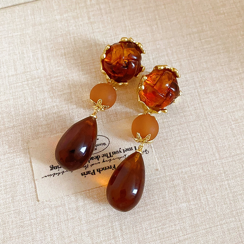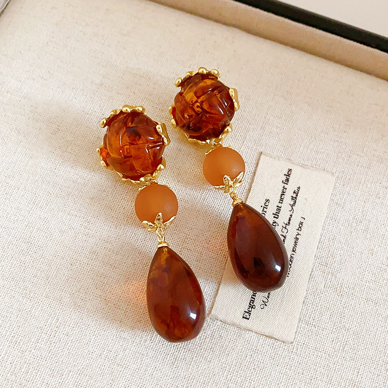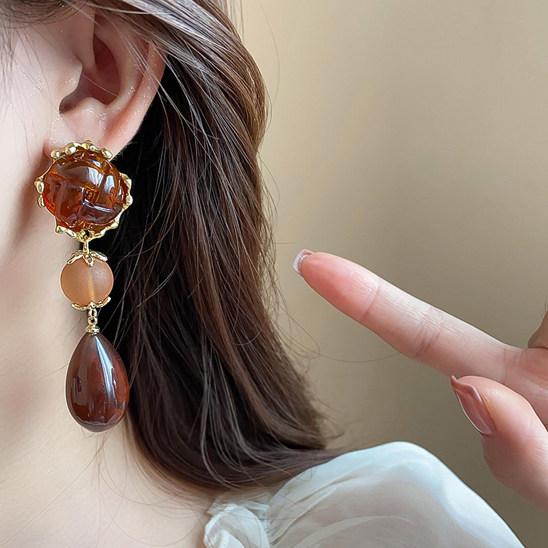 Silver Needle Mid-ancient Vintage Water Drop Tassel Earrings Maillard Style
