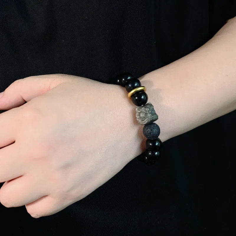 The Silver Stone Xingshi Bracelet for Men and Women is a beautiful blend of retro elegance, spiritual