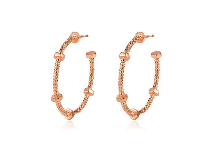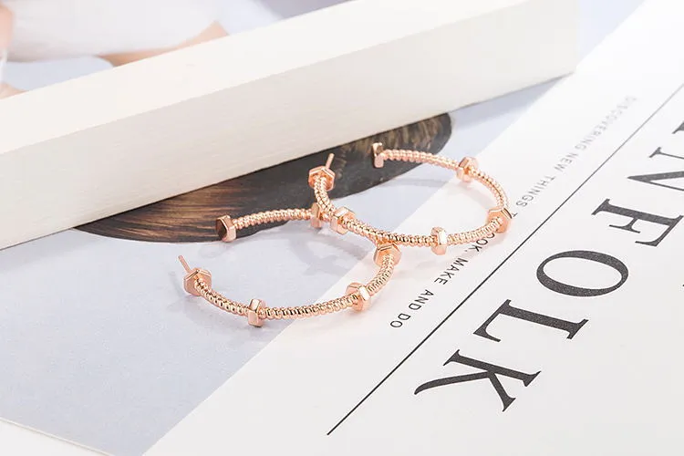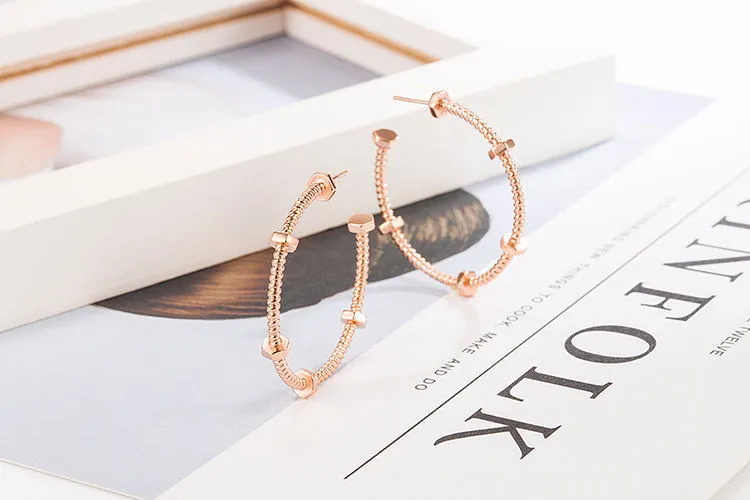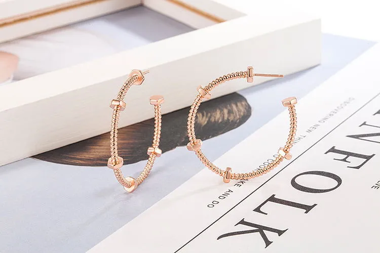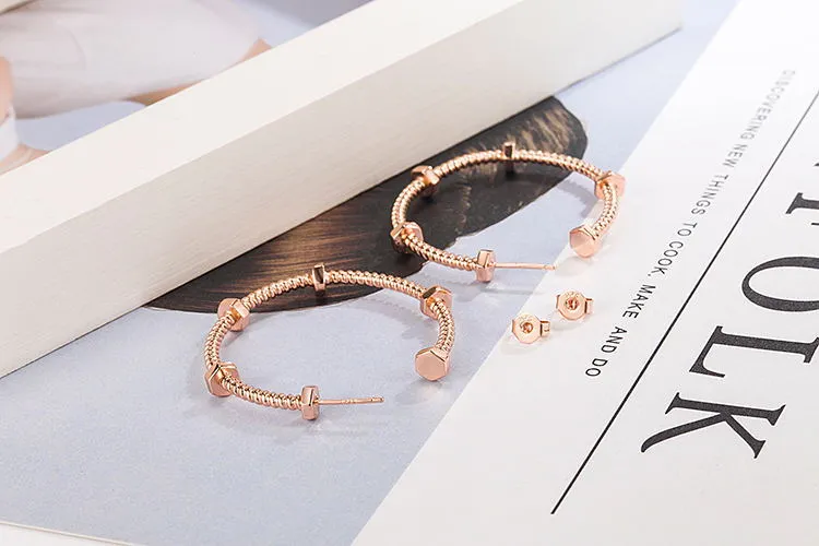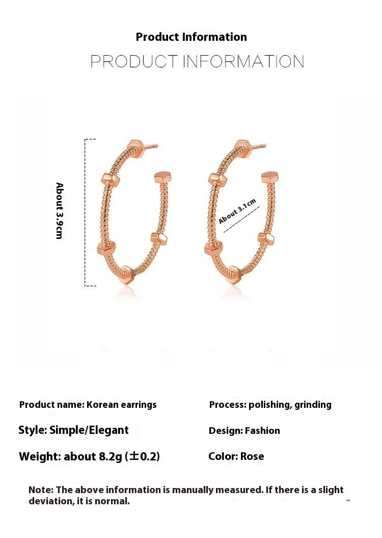 Simple And Elegant Round Studs Ring Spiral Texture Earrings