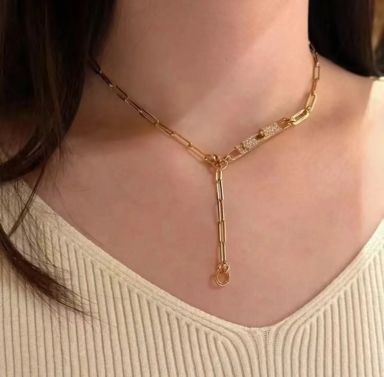 The key feature of this necklace is the eye-catching tassel detail that hangs gracefully from the chain. The tassels add a touch of movement and flow, creating a dynamic, yet refined look. Whether swaying gently as you walk or resting elegantly against your neckline, the tassels offer a stylish, fashionable statement.