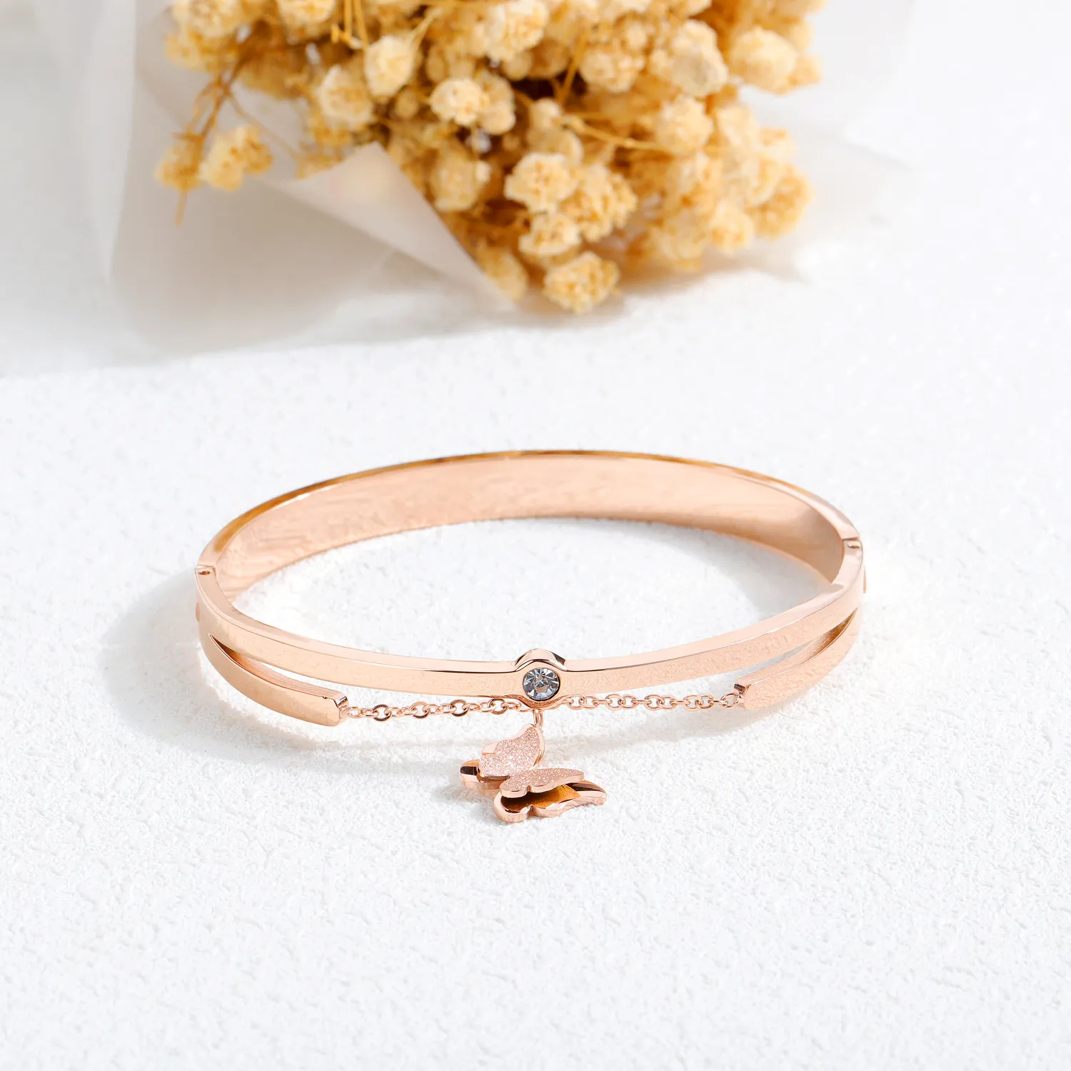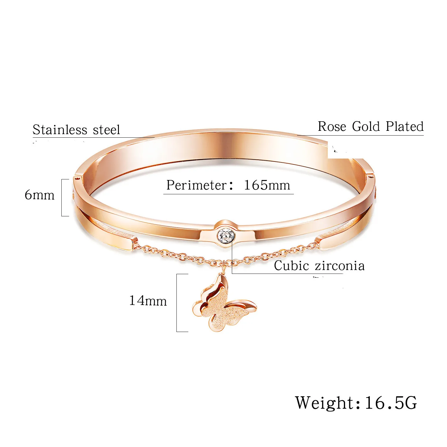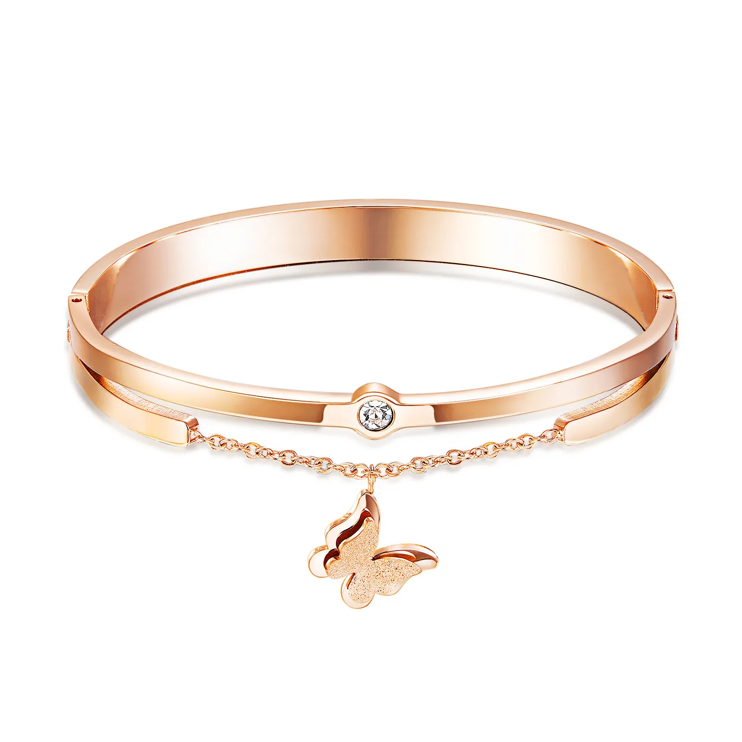 Simple Butterfly Diamond-plated Rose Gold Bracelet