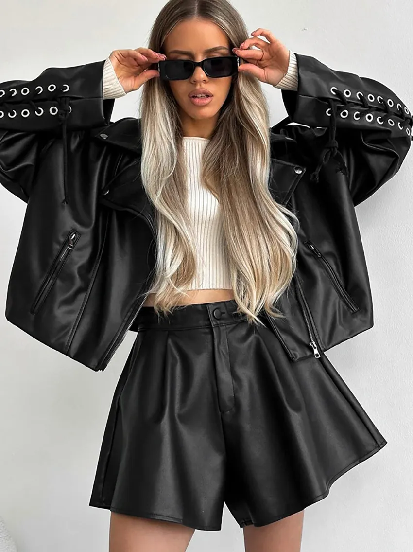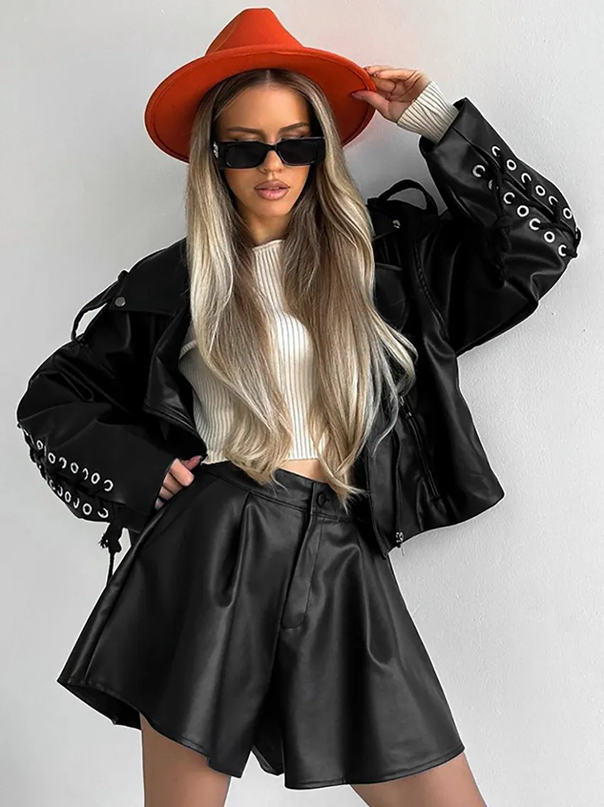 Simple Fashion Leather Shorts Niche High Waist