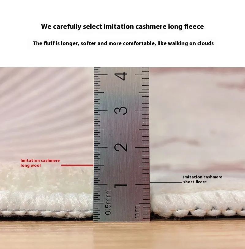 Built with everyday life in mind, this carpet withstands normal foot traffic while maintaining its plush texture and appearance. The underside is designed to be stable and slip‑resistant, providing safety even on smooth flooring surfaces like wood, tile, or laminate. Additionally, the thickened fleece pile traps warmth and helps insulate the room, reducing cold floor contact and enhancing the overall warmth of your living area.