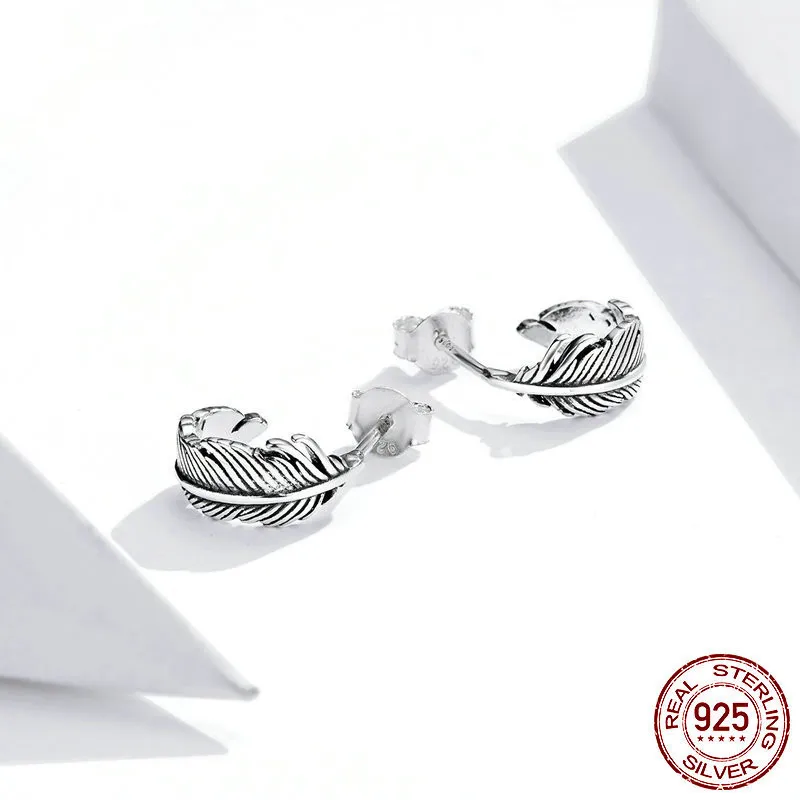 The Simple Line Feather S925 Silver Earrings feature a delicate, streamlined feather design that captures the beauty of nature in its purest form. The feather is subtly etched into the sterling silver, giving it a clean, minimalist look while retaining its natural, organic feel. The simplicity of the design makes these earrings versatile enough to pair with a variety of outfits, from casual to formal, adding a touch of elegance without overwhelming your ensemble.