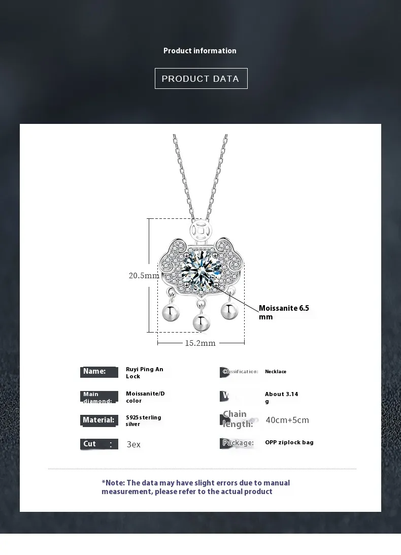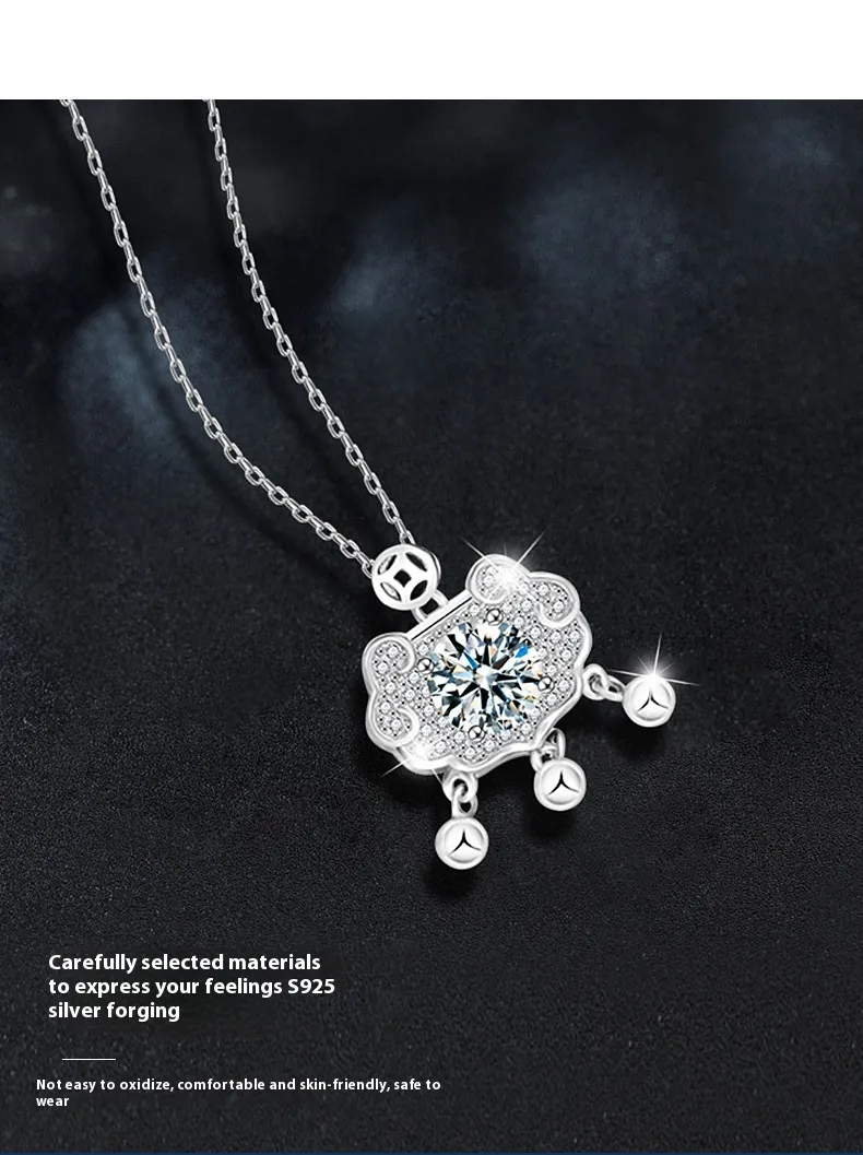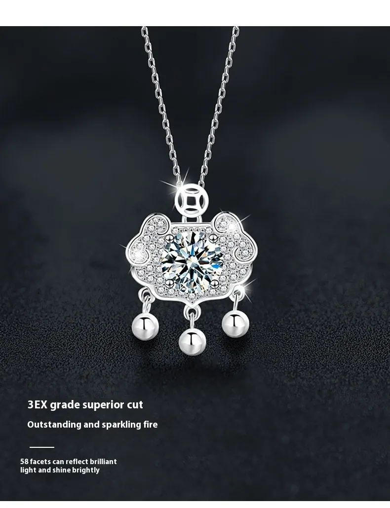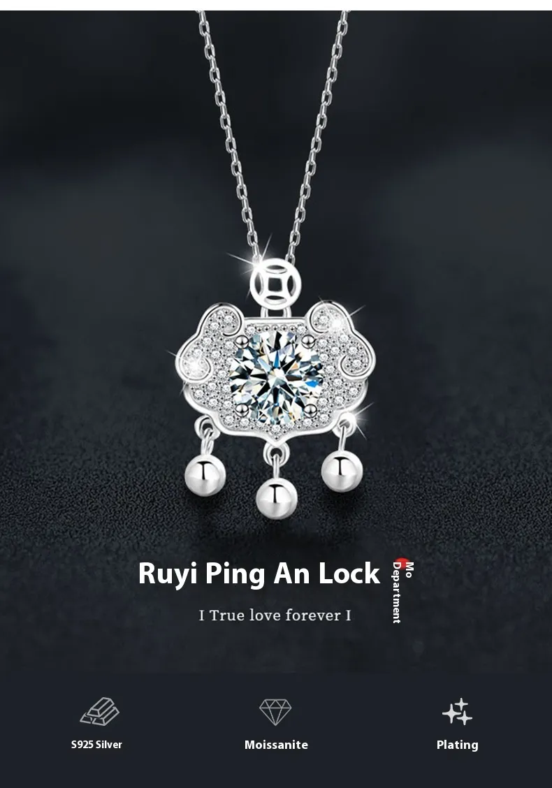 - Design: Ruyi safety lock pendant with moissanite stone