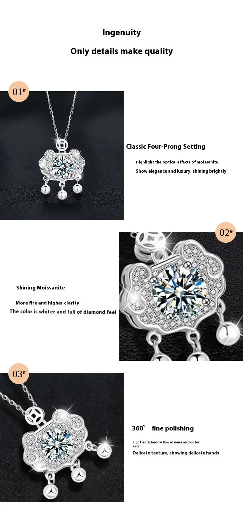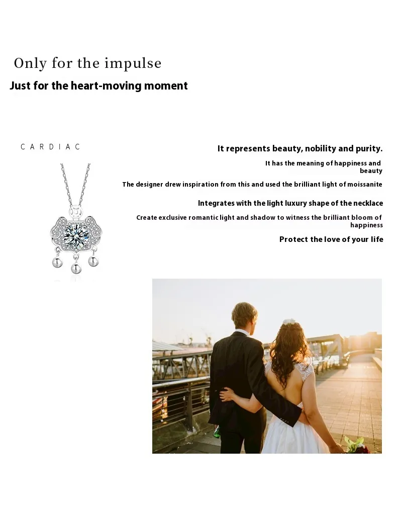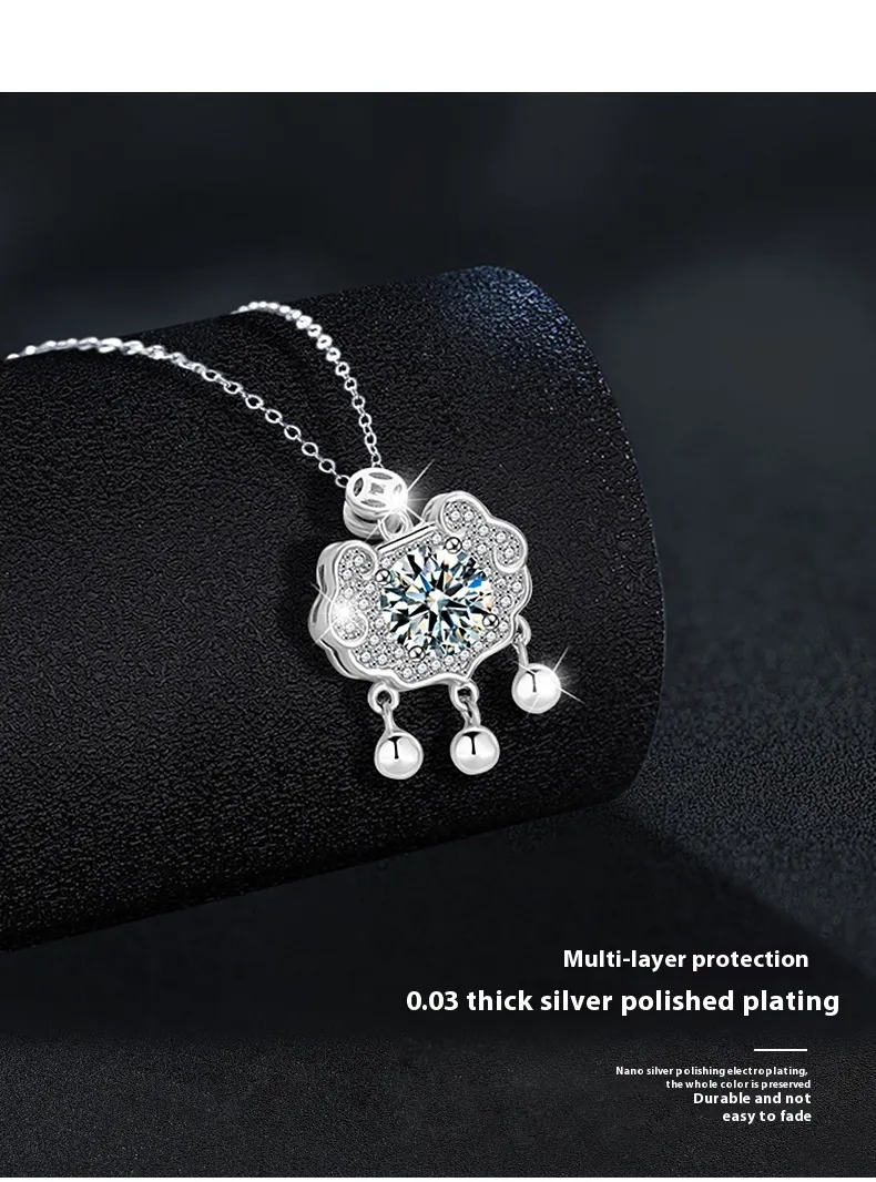 - Design: Ruyi safety lock pendant with moissanite stone