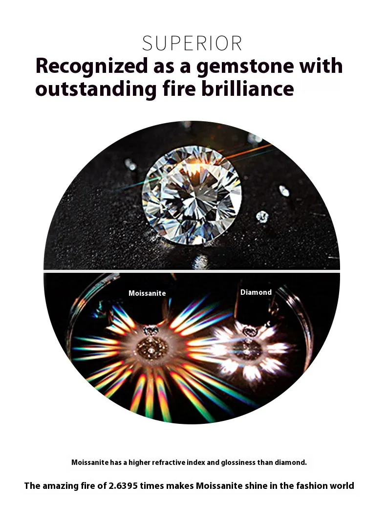 - Material: Moissanite stone, high-quality metal (hypoallergenic alloy or sterling silver)
