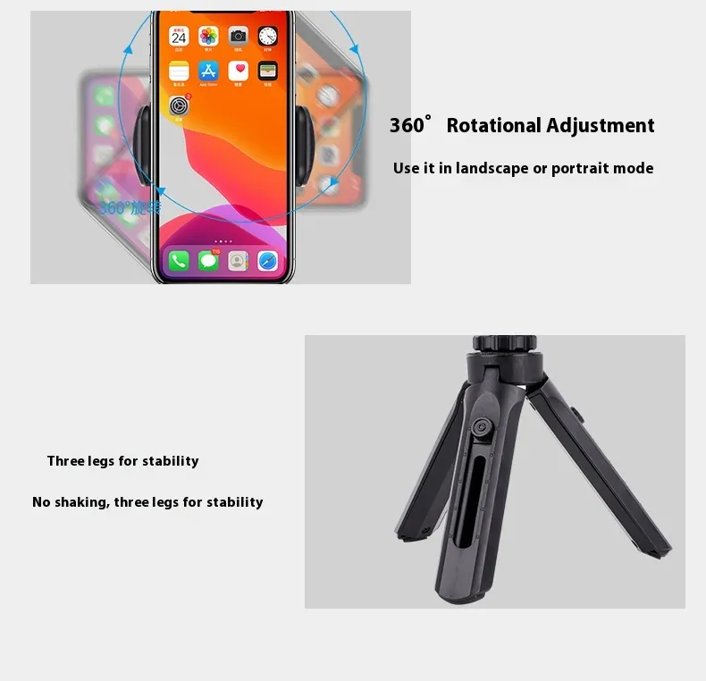 - Stable Desktop Tripod – Keeps your phone secure for photography, streaming, or video calls.