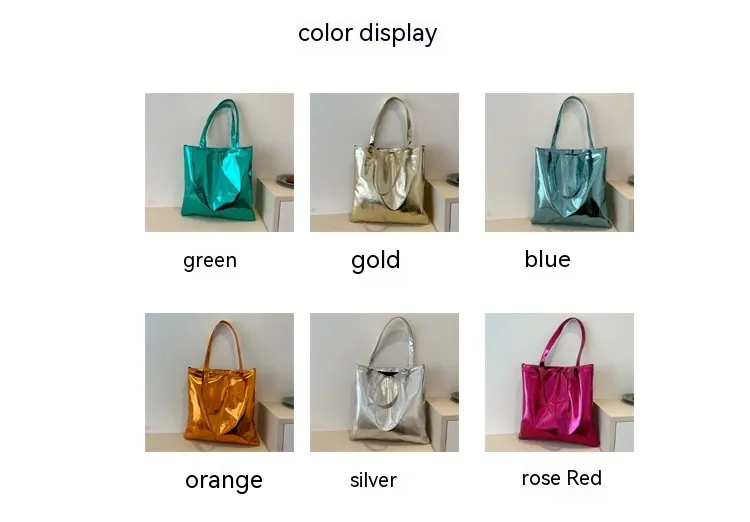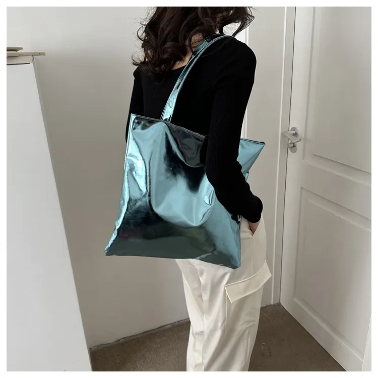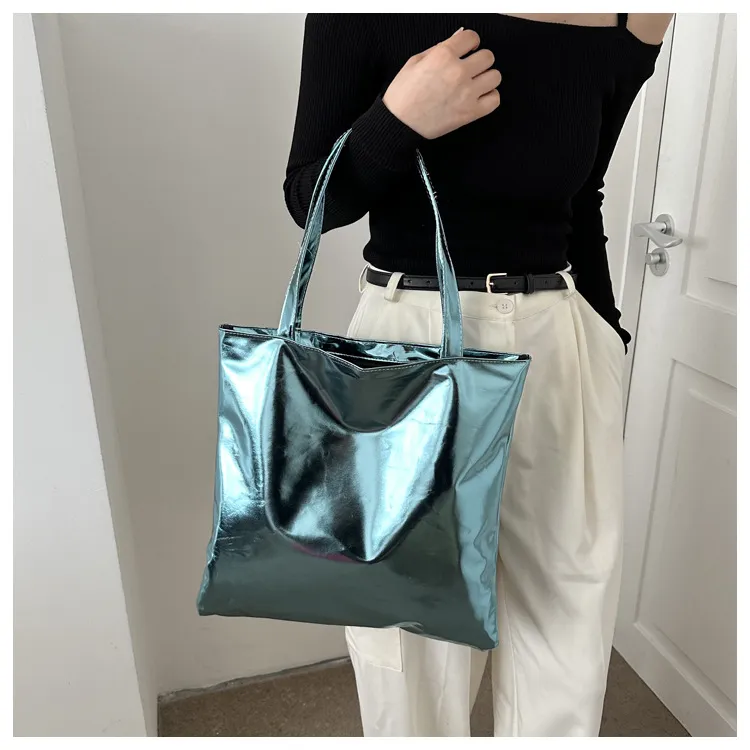 Simple Portable Large Capacity Texture Shiny Shoulder Bag Personality Soft Pu Paint Commuter Tote