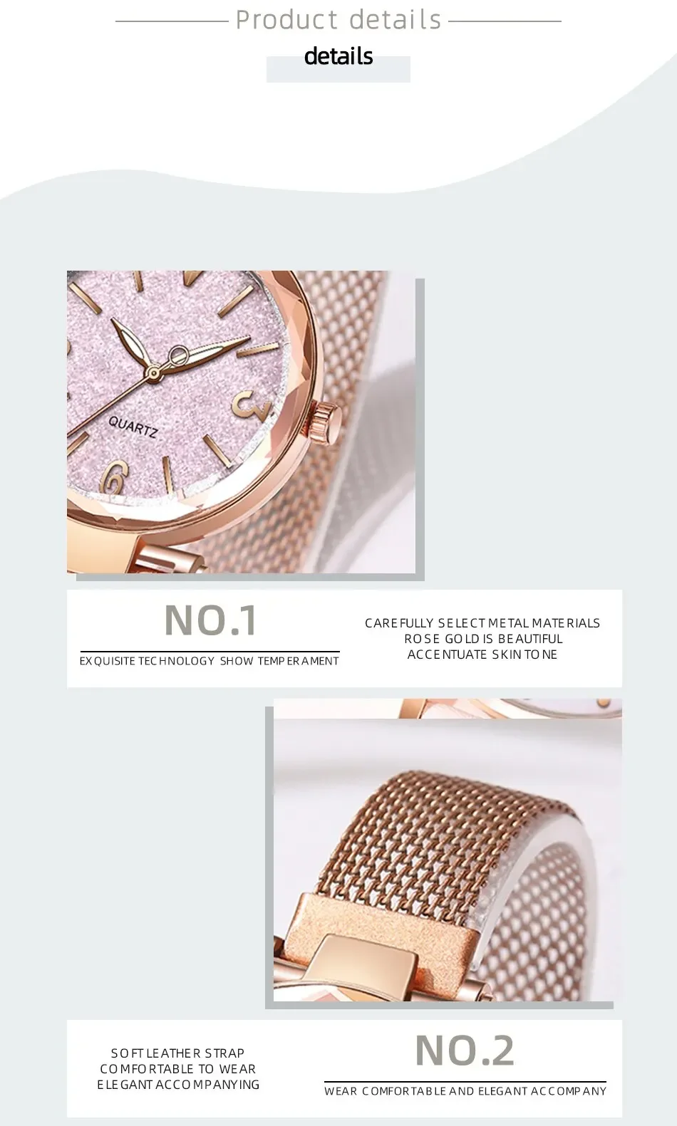 The New Fashion Women Watches is the epitome of modern design and practicality. With its simple rose gold mesh belt