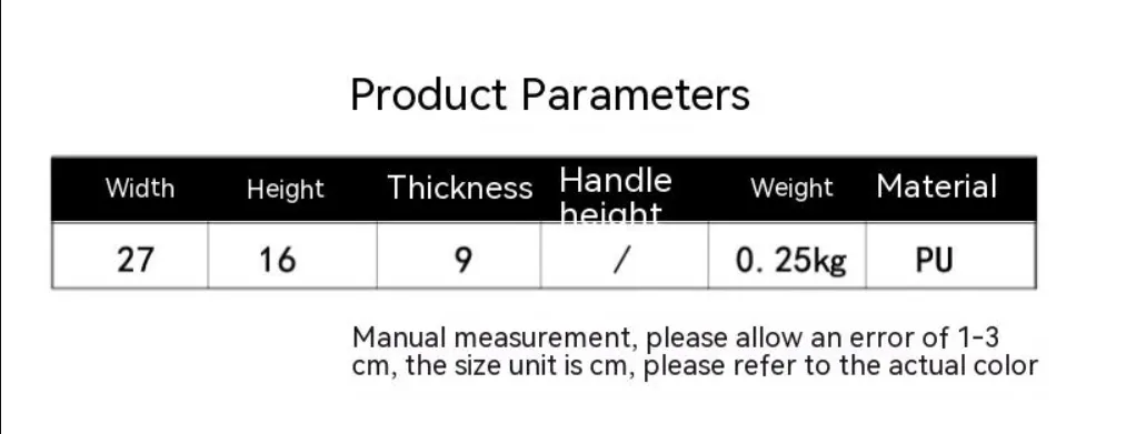 DescriptionMaterialLeatherProduct AttributesOrdinaryPackage Size270*90*160(1mm)