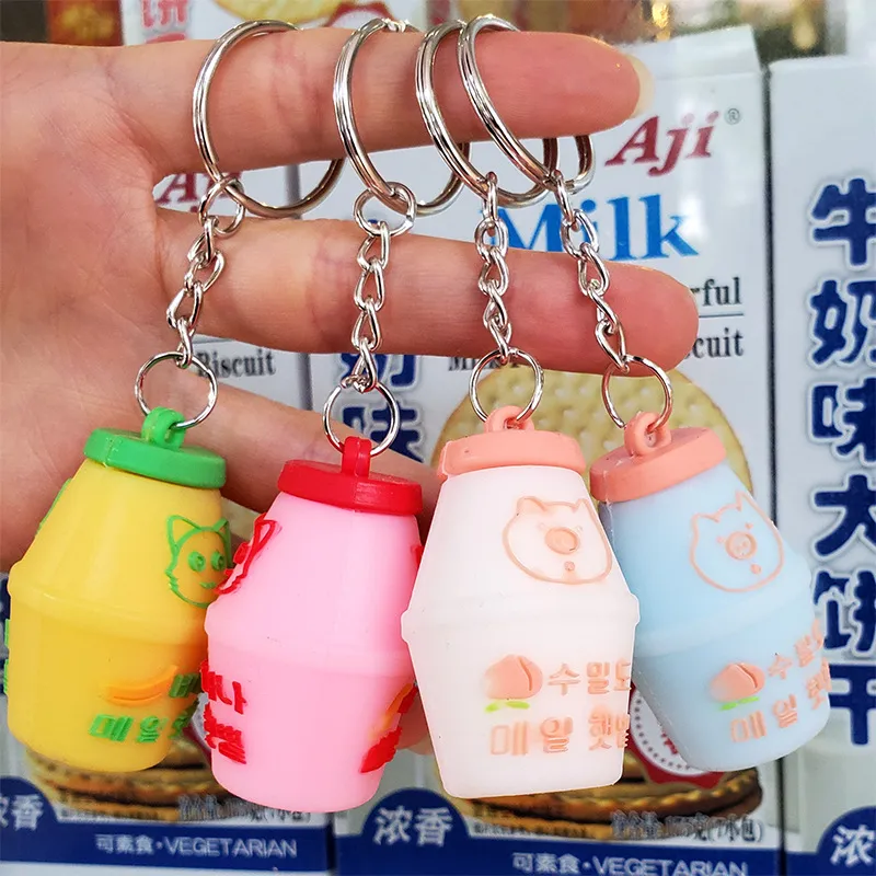 Simulation Yogurt Fruit Drink Keychain Three-dimensional Soft Glue
