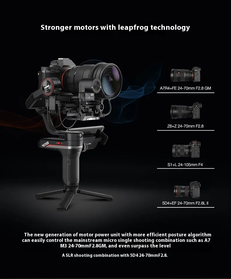 Designed for both mirrorless cameras and Single Lens Reflex (SLR) cameras, the stabilizer is compatible with a wide range of camera models and lens sizes. Whether you're using a lightweight mirrorless camera or a heavier DSLR setup, this stabilizer provides a secure and stable platform, offering the flexibility to shoot a variety of content with complete ease. It also supports action cameras for those interested in extreme sports or handheld video filming.