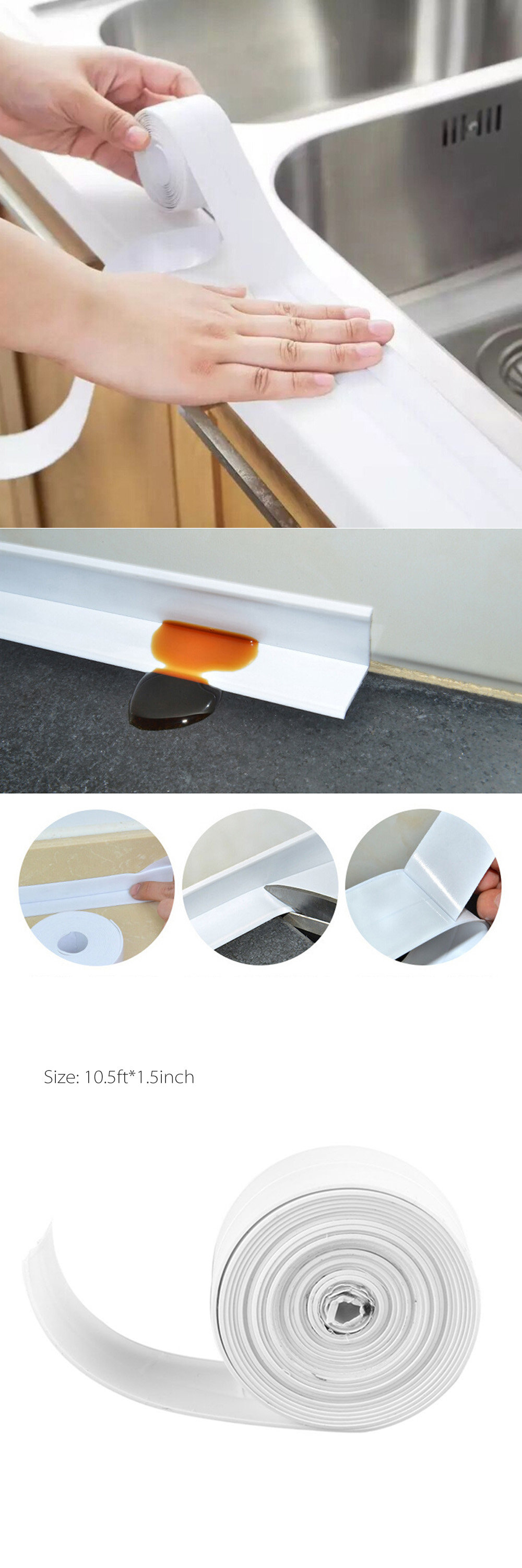 The sink sealing strip tape is a practical solution designed to keep your kitchen, bathroom, and countertops free from
