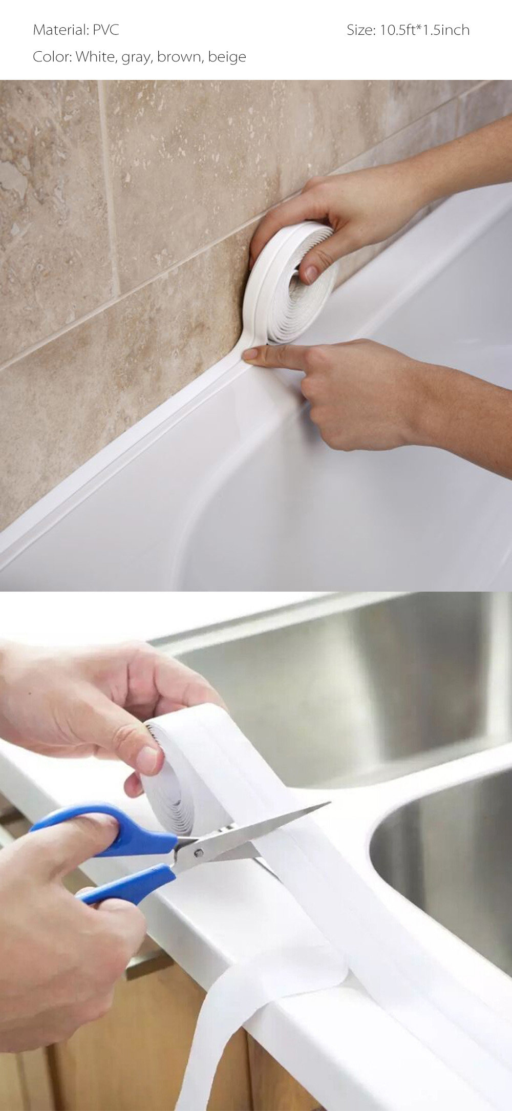 moisture and mold. This waterproof caulk strip is perfect for sealing gaps between sinks, bathtubs, and countertops,