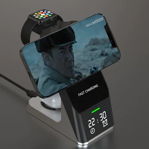 The included 15W QC 3.0 adapter is required for the best charging experience. Two mobile phones, watches and headphones are charged at the