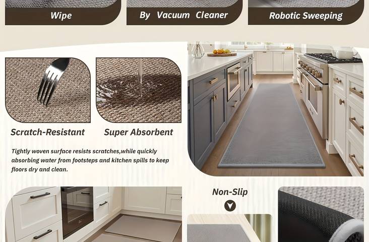The SIXHOME Non-Slip Kitchen Mat offers absorbent, durable, and stylish protection for your floors. Featuring rubber backing, braided weave design, and soft polyester construction, it provides comfort and functionality in any kitchen, bathroom, hallway, or laundry room.