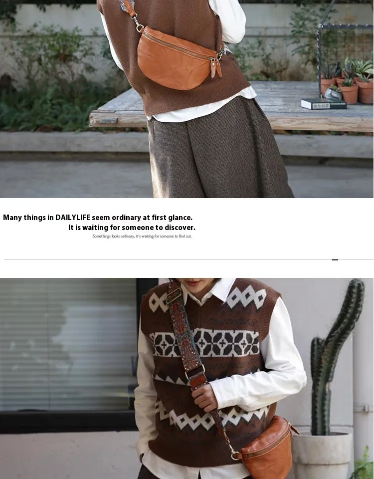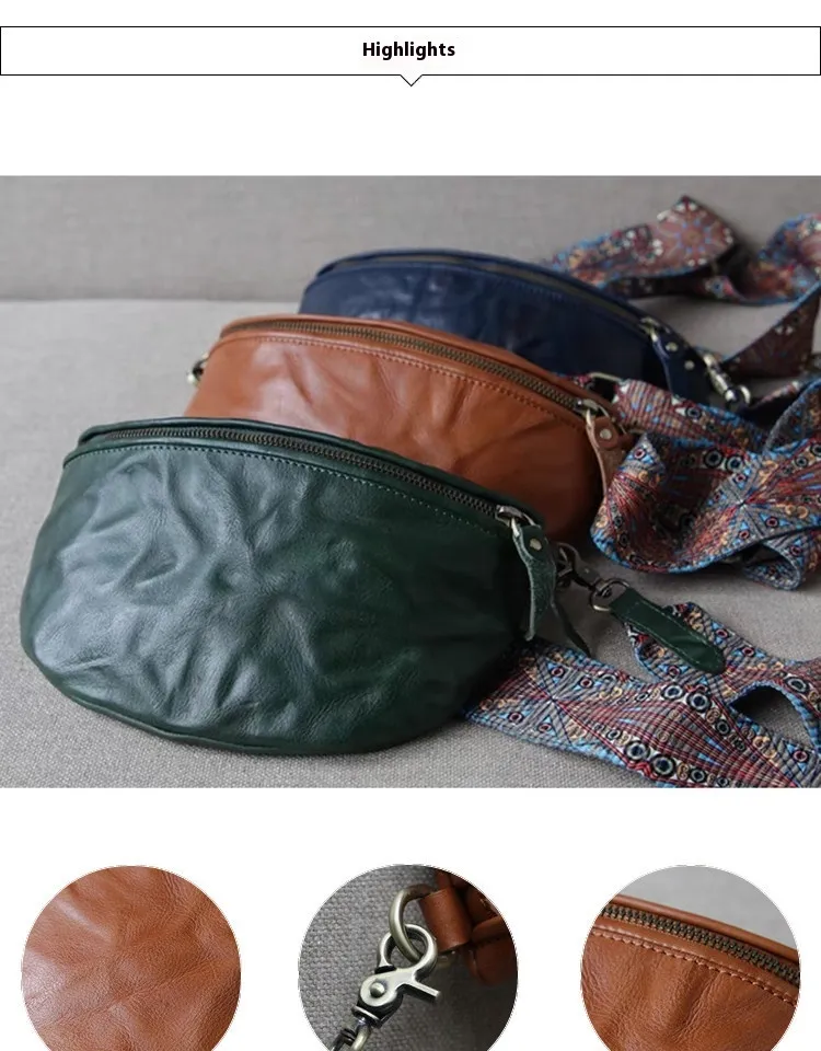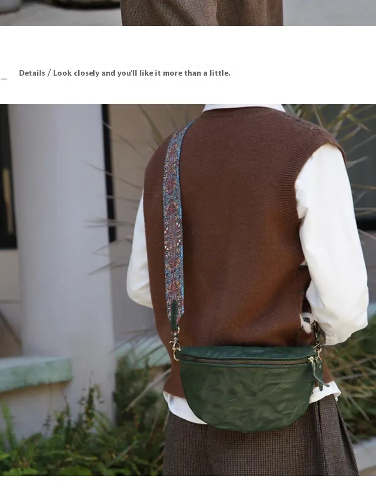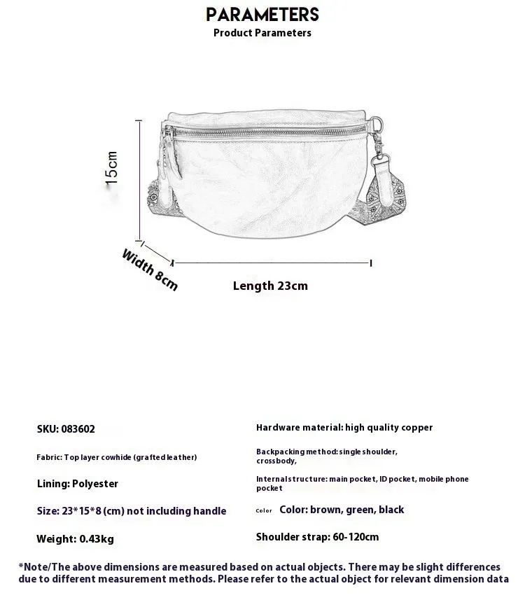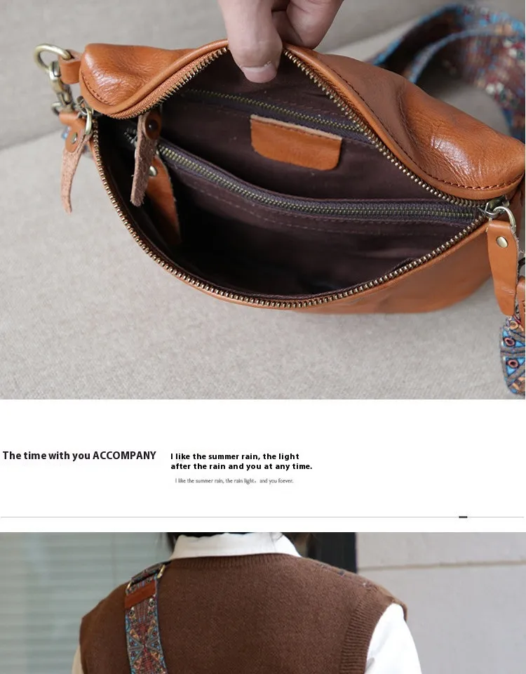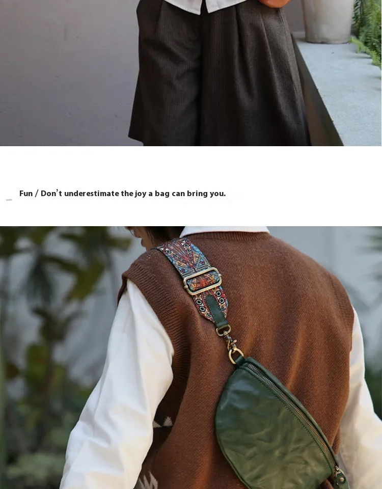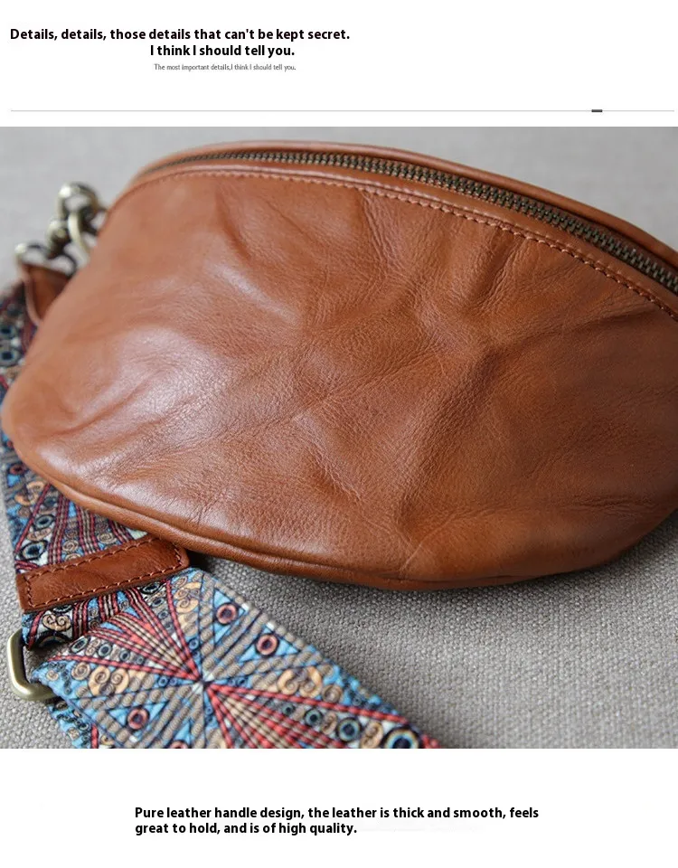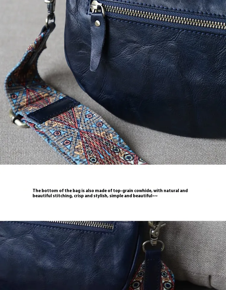 Skeleton-skin Saddle Bag Wide Shoulder Strap Top Layer Cowhide Retro Simple Bohemian Style