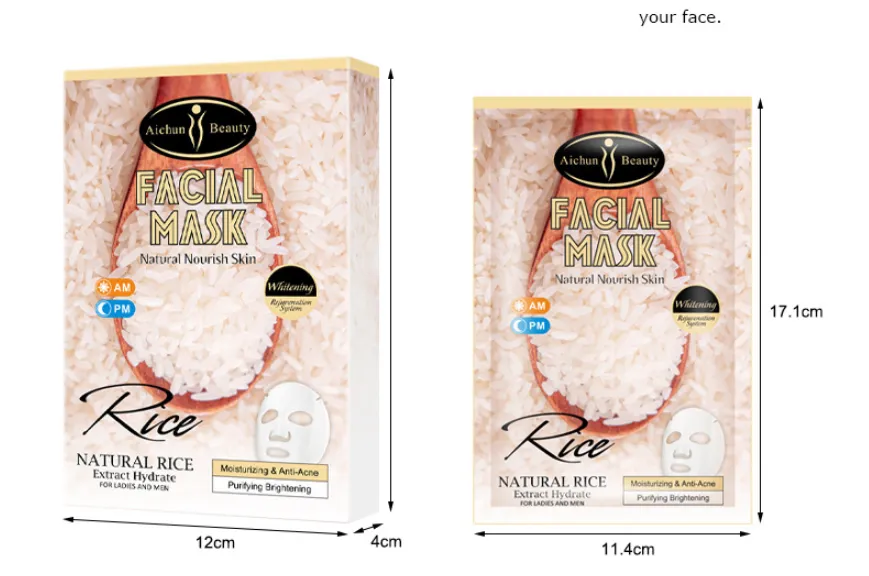 Skin Rice Mask for moisturizing, anti-acne treatment, and brightening. Natural rice extract hydrates and purifies, providing smooth, radiant skin for men and women.