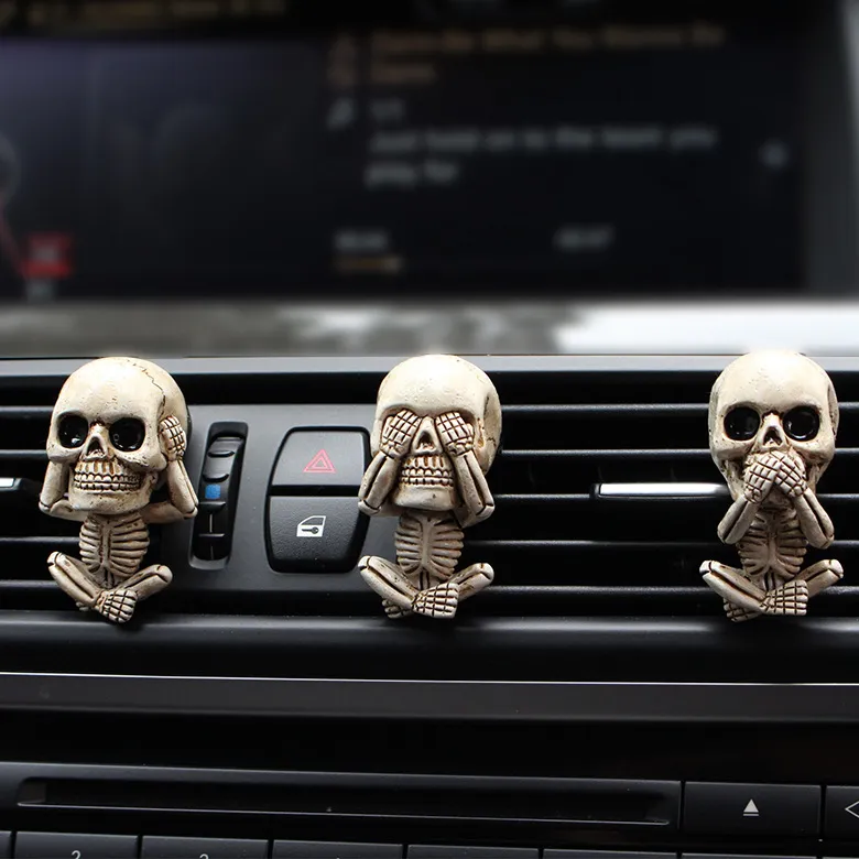 Skull Car Ornaments Air Outlet Ghost Head Three-piece Interior Pendant Decoration Ornament Ghost Head Desktop Figurines Decor