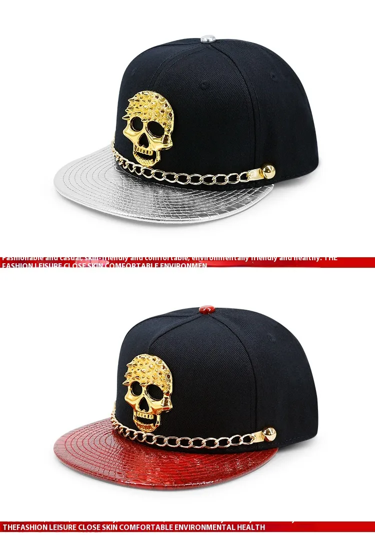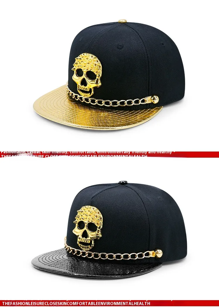 The Skull Rivet Hip-Hop Baseball Cap is designed to catch attention. Its flat-brim style and metal skull rivets create a striking combination that reflects confidence and individuality. This cap is perfect for those who like to make a statement with their accessories, bringing a hint of rock-inspired flair to hip-hop fashion. Ideal for both men and women, this unisex design lets you showcase your bold style while staying on-trend.