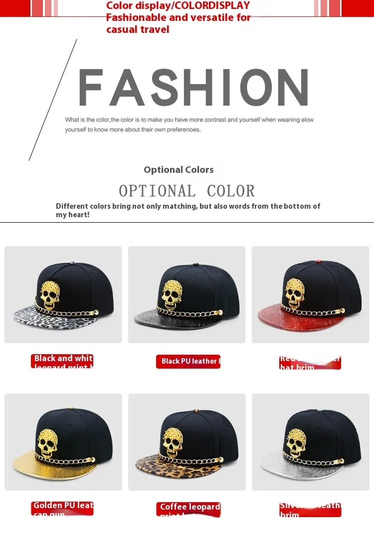 To match different styles, the Skull Rivet Hip-Hop Baseball Cap is available in a range of colours, from classic black and grey to bold shades that add a pop of personality. Each colour option features the signature skull rivet details, allowing you to choose the look that best fits your style. With these choices, you can easily pair this cap with any outfit, making it a versatile accessory in your streetwear collection.