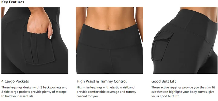 4 POCKETS: Leggings for women with 2 back pockets and 2 side cargo pockets can easily hold your essentials, giving you plenty of storage