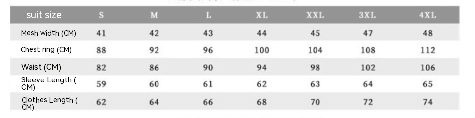 Size: S recommend [42.50kg-47.50kg],M recommend [47.50kg-55.00kg],L recommend [55.00kg-65.00kg],XL recommend [65.00kg-72.50kg],2XL recommend