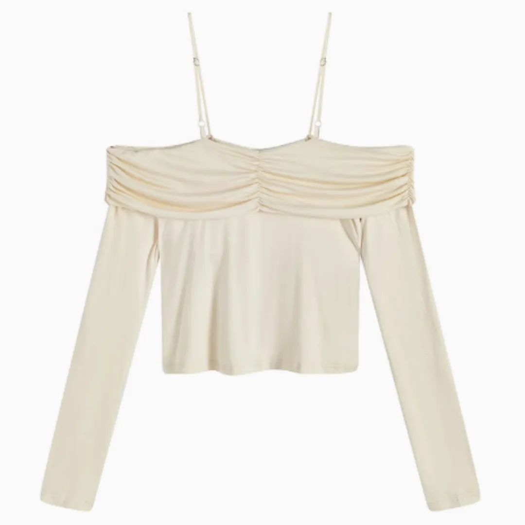 Slimming And Slimming One Shoulder Top, Sticky And Long Sleeved T