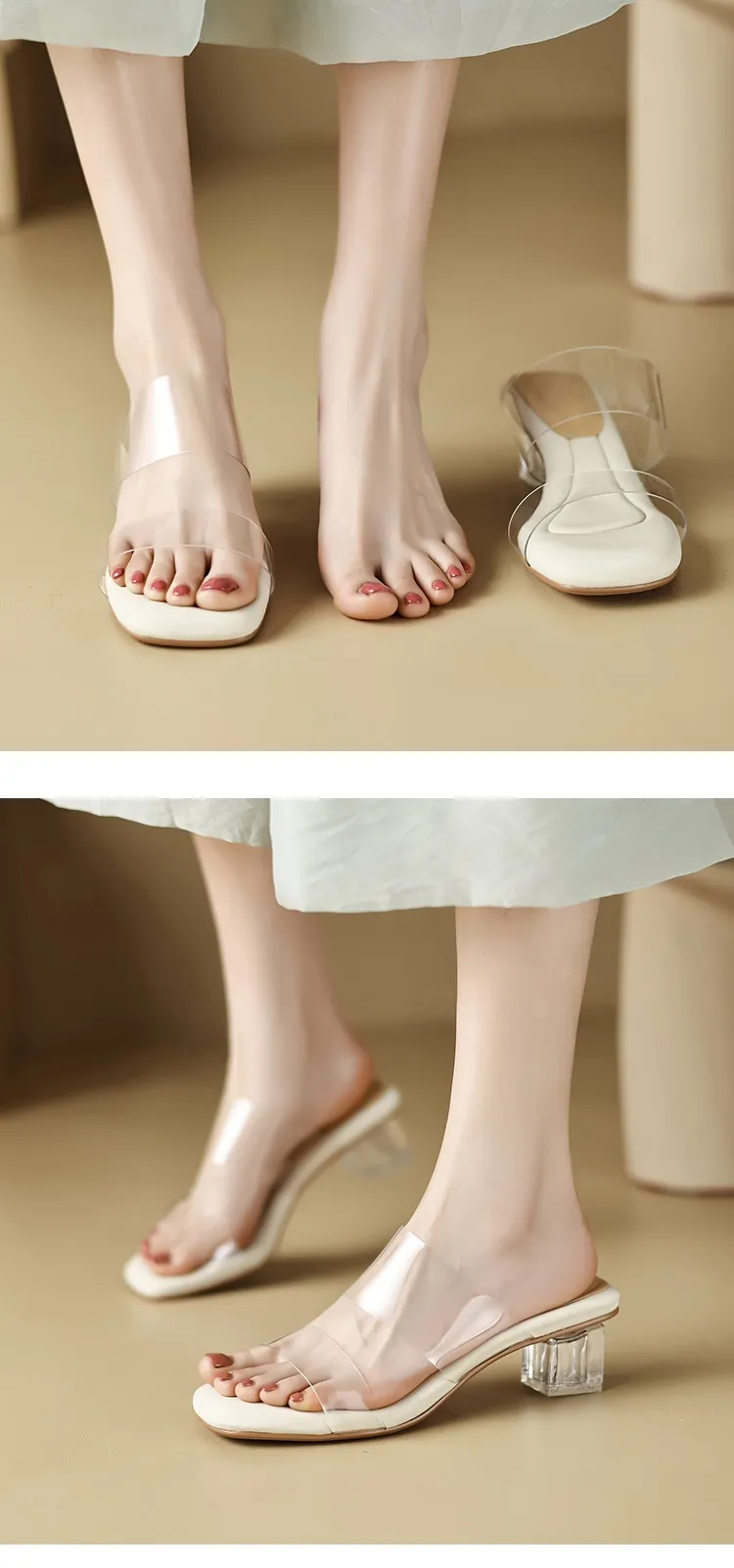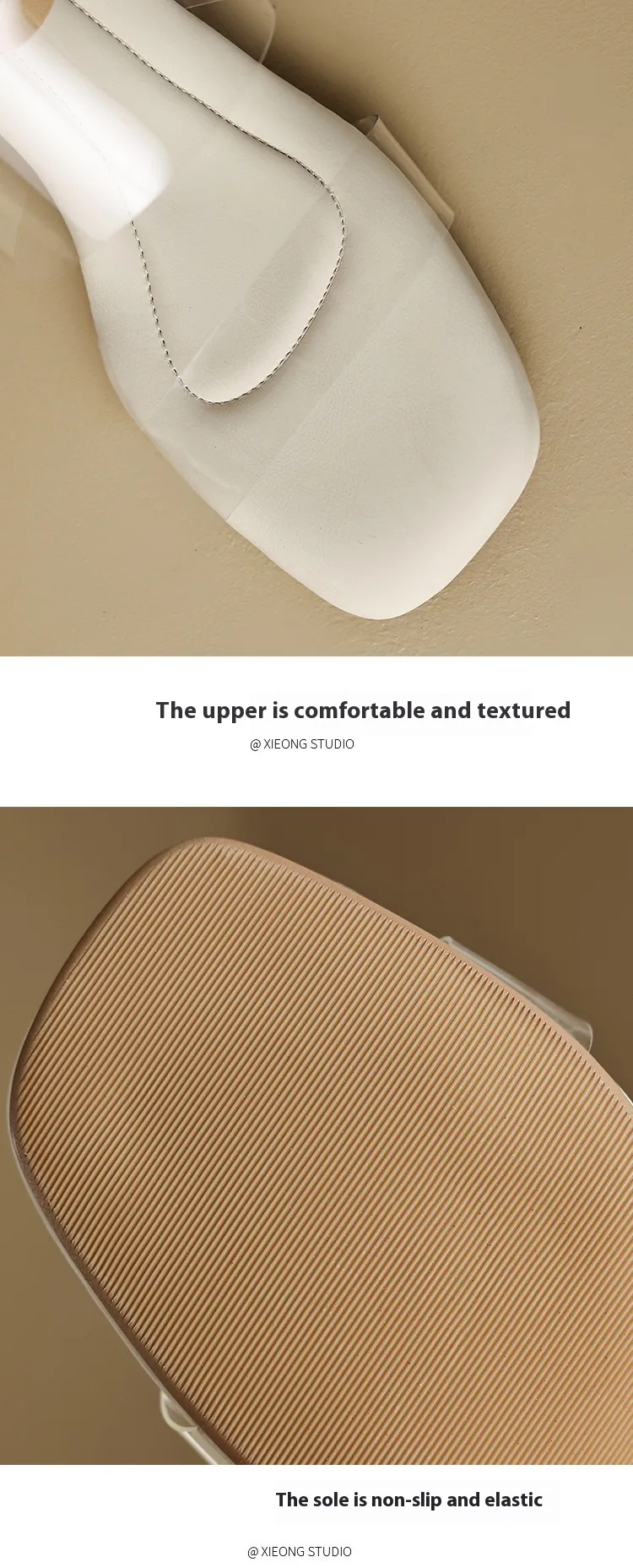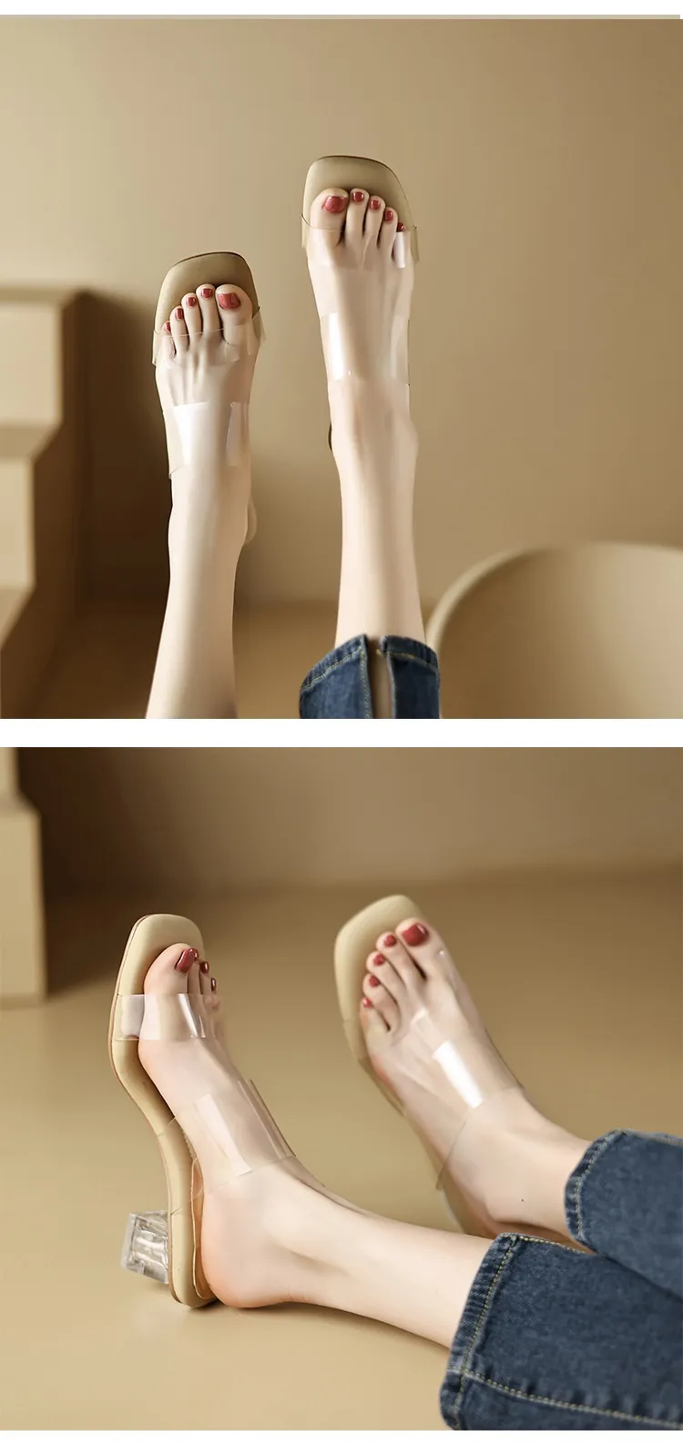 What sets the Slip-on Sandals Women's Summer Wear Crystal Shoes Chunky Heel apart is their stunning crystal embellishments. These eye-catching crystals are carefully arranged to add a touch of sparkle to your step, elevating your style effortlessly. The reflective crystals catch the light beautifully, giving the sandals a glamorous look that will turn heads wherever you go.