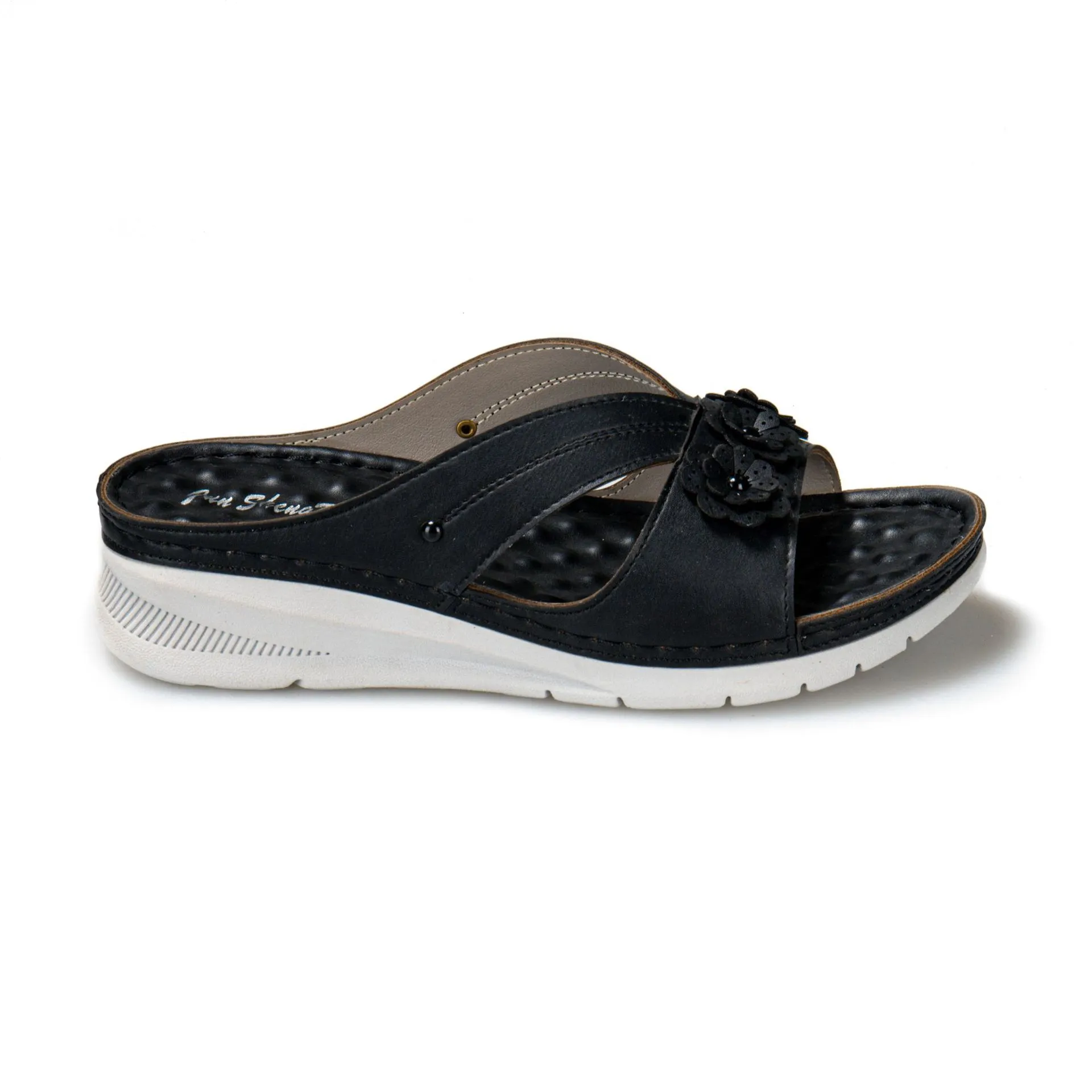 solution. With their beautiful floral accents, slope heel, and cushioned insole, these slippers elevate your everyday footwear collection
