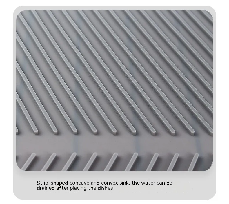 Beyond dish drying, the Sloped Silicone Draining Mat is versatile enough to function as a trivet for hot pots and pans, a base for rinsed produce, or a protective layer for fragile cookware. Its resilient construction ensures it maintains performance under frequent use and varied kitchen tasks.