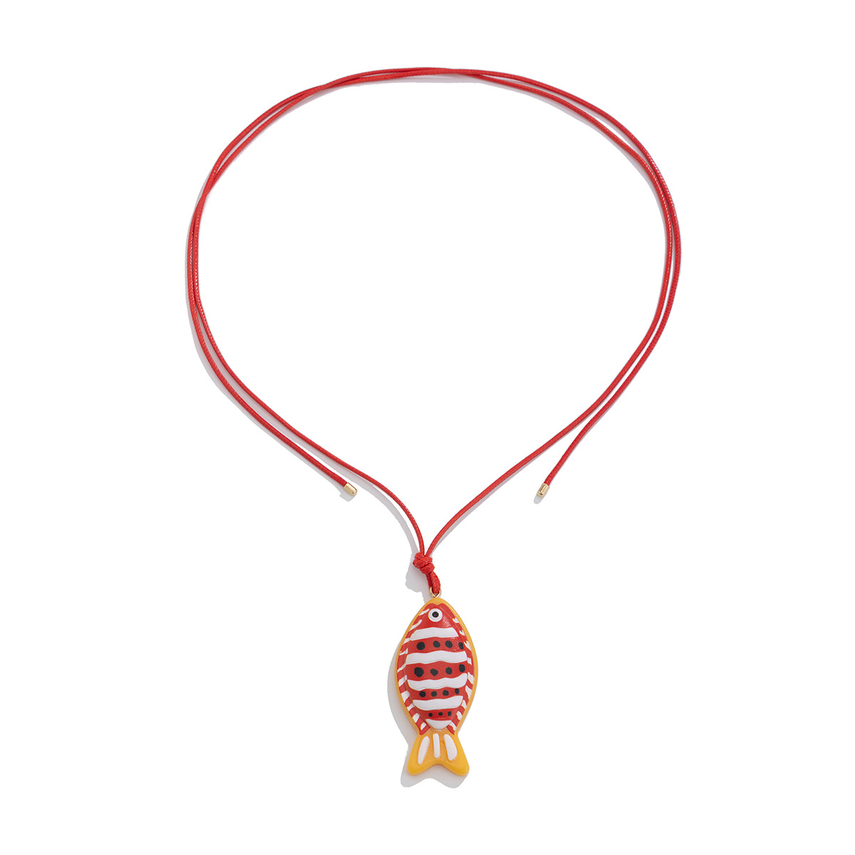 Small Goldfish Pendant Necklace Leather Wax Rope Handmade