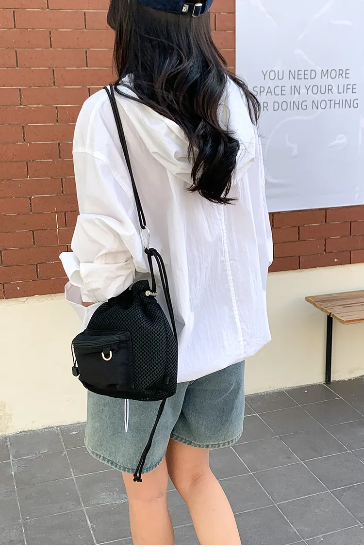 Small Mesh Drawstring Bucket Bag Fashion Cute Messenger Shoulder Bags For Women