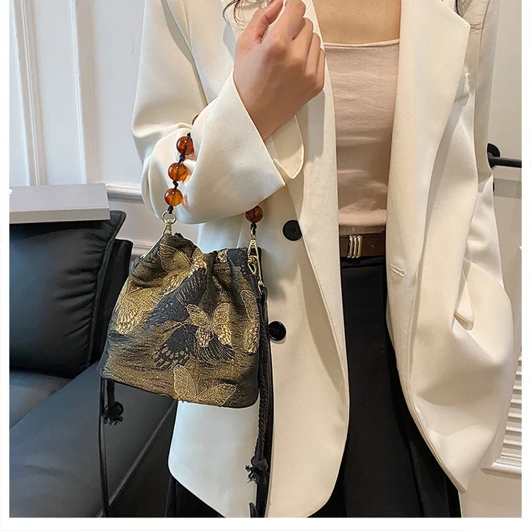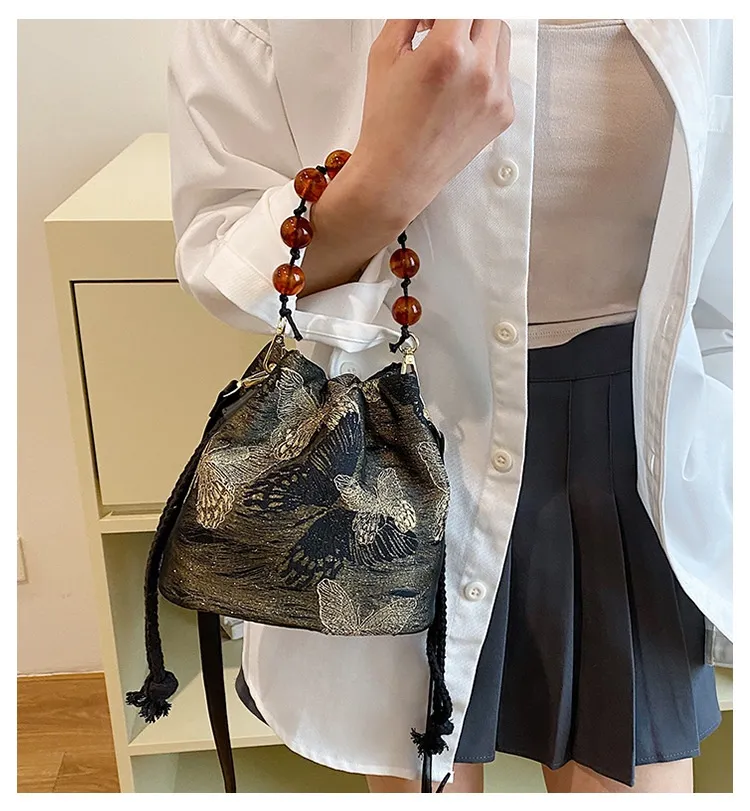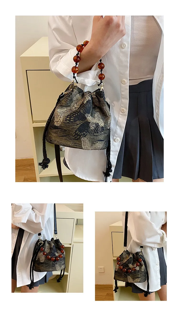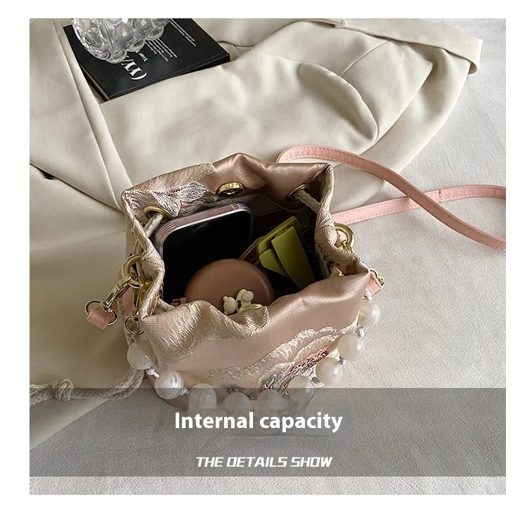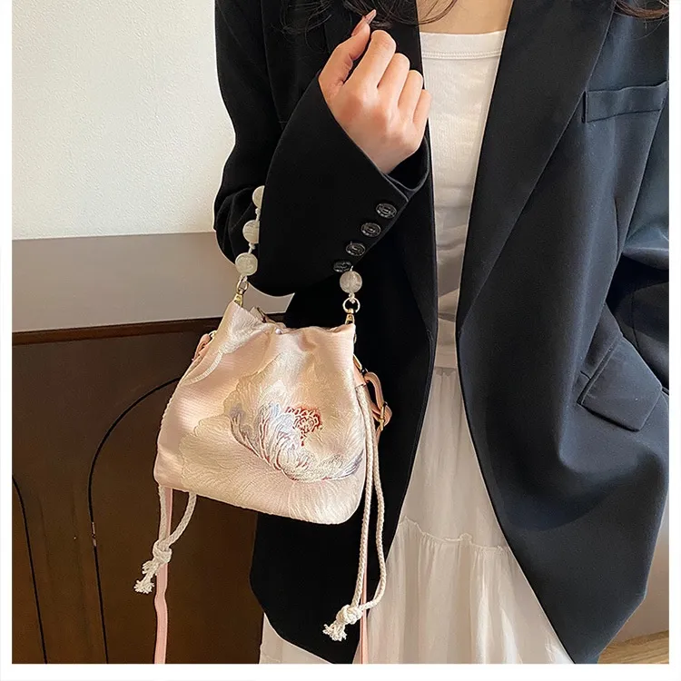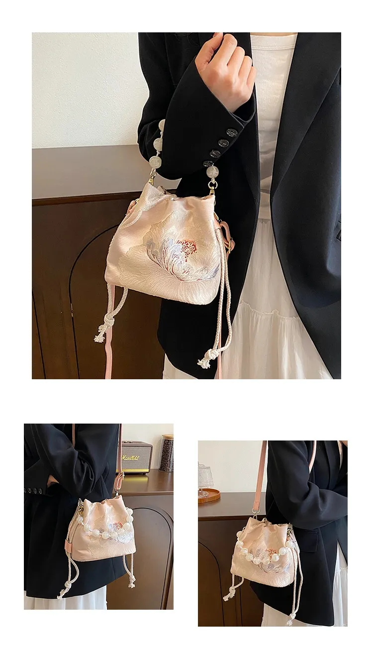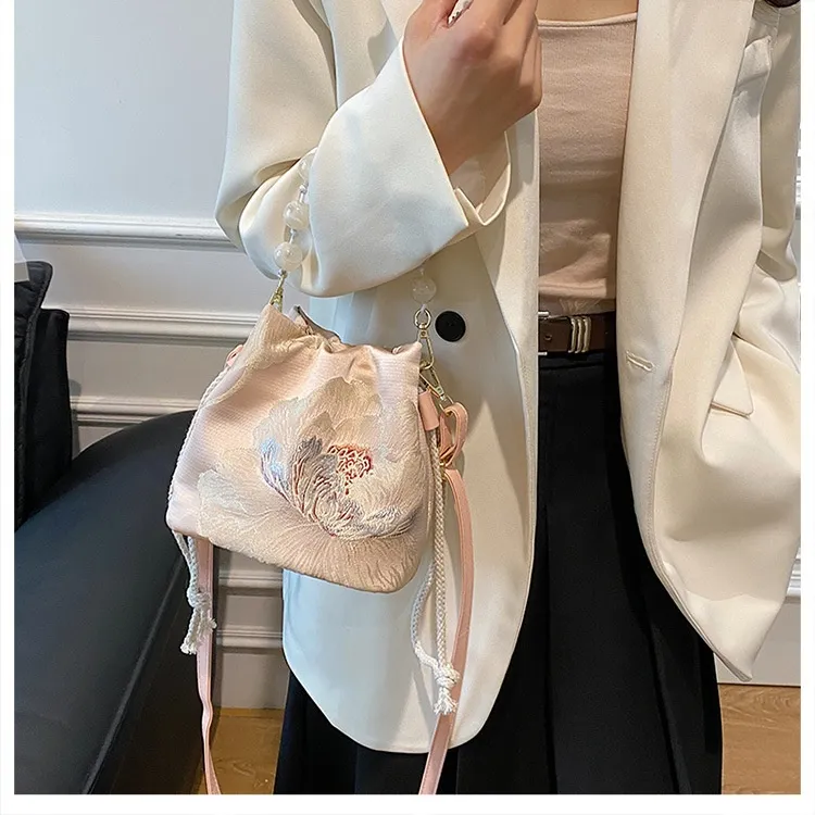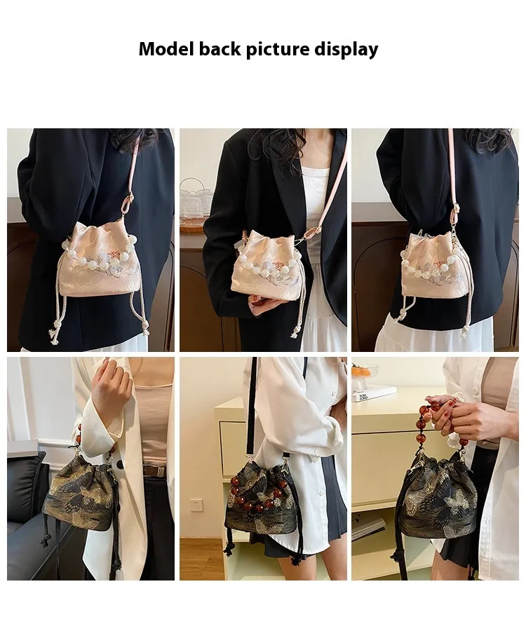 The bag's design draws inspiration from classic Han Chinese aesthetics, featuring elements like embroidered motifs, rich fabrics, and flowing lines that reflect the cultural heritage. The intricate embroidery often includes symbols of prosperity, nature, and spirituality, making each bag a work of art. Despite its traditional roots, the bag incorporates modern features like an adjustable strap and spacious compartments, offering practicality for everyday use.