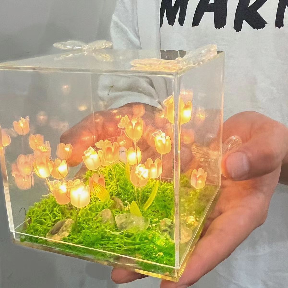 Small Night Light Romantic Gift For Girlfriend Mirror Lamp DIY is a delightful and creative gift idea that combines a mirror and a night lamp. Featuring a tulip or floral design, this lamp offers a soft and warm glow, perfect for creating a romantic atmosphere.