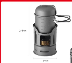 Stand, alcohol stove, base, cleaning cloth, windshield, bowl, pot*1