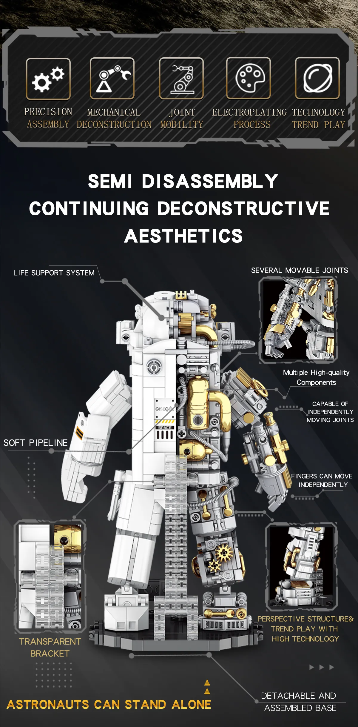 Building the astronaut model involves multiple steps that require children to follow instructions, think critically, and solve problems. This helps improve their logical thinking, attention to detail, and ability to follow complex instructions. The toy also encourages creativity, as children can modify and customize the model after assembly, making it unique to their vision.