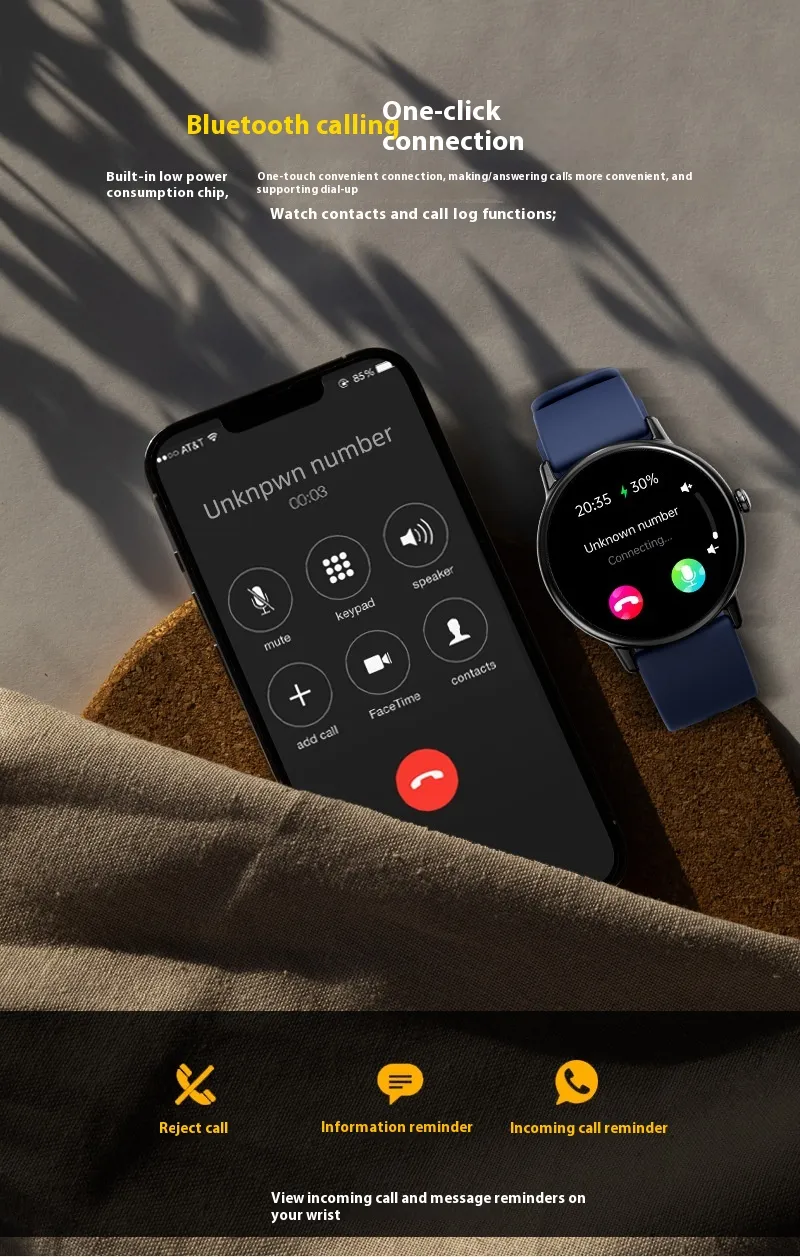 Bluetooth Calling: Make and receive calls directly from your watch, keeping your hands free and your phone out of sight.
