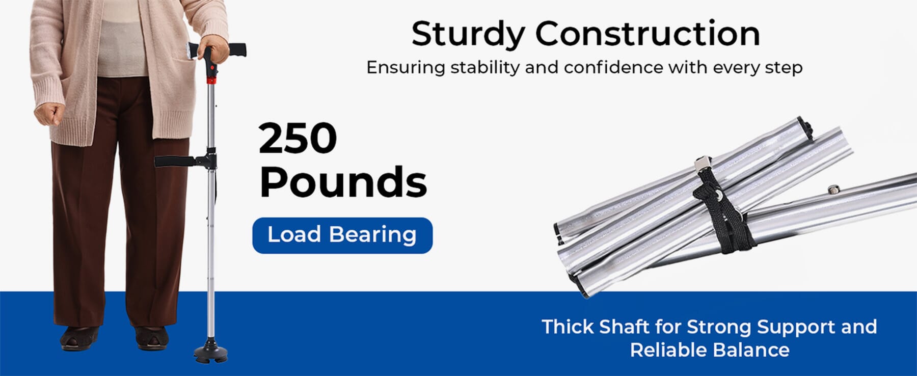 ✔ Anti-slip base ensures secure walking on various surfaces, reducing the risk of falls.