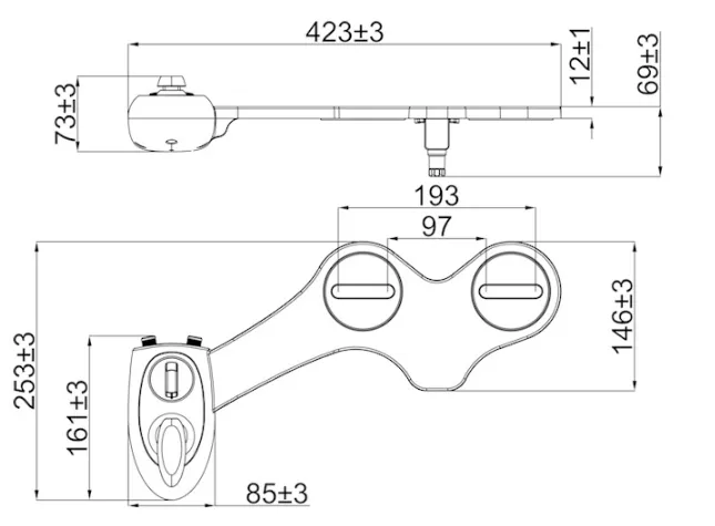 Additional features: hip wash, water pressure adjustment