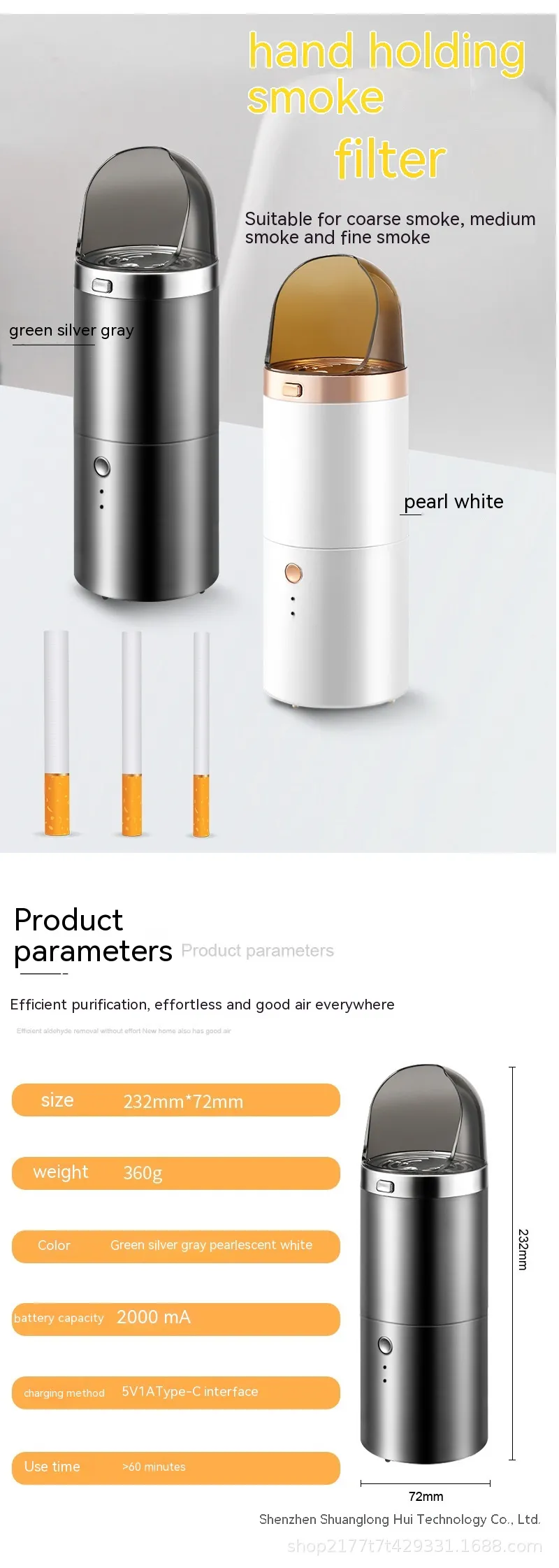 Features and Benefits of the Smart Smoke Handheld Ashtray Air Purifier