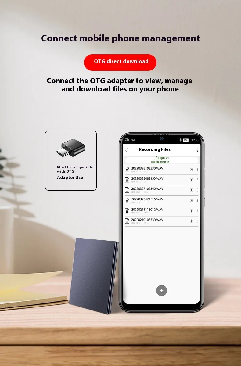 Designed for convenience, this recorder is ultra-thin, lightweight, and easy to carry. Slip it into your pocket, bag, or notebook for discreet recording anytime, anywhere.