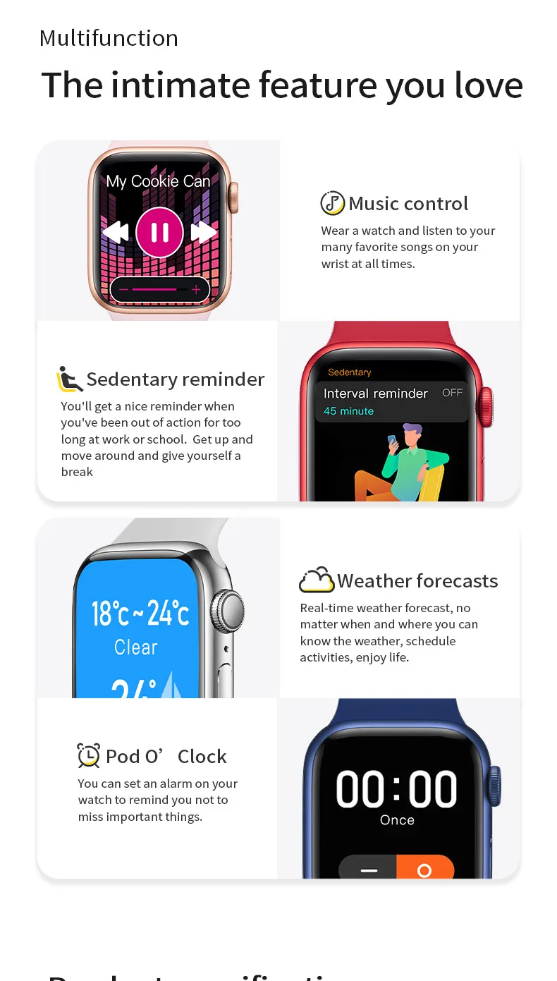 Functions: step counting, heart rate monitoring, social entertainment, Bluetooth calling, smart reminder, remote control selfie, sleep