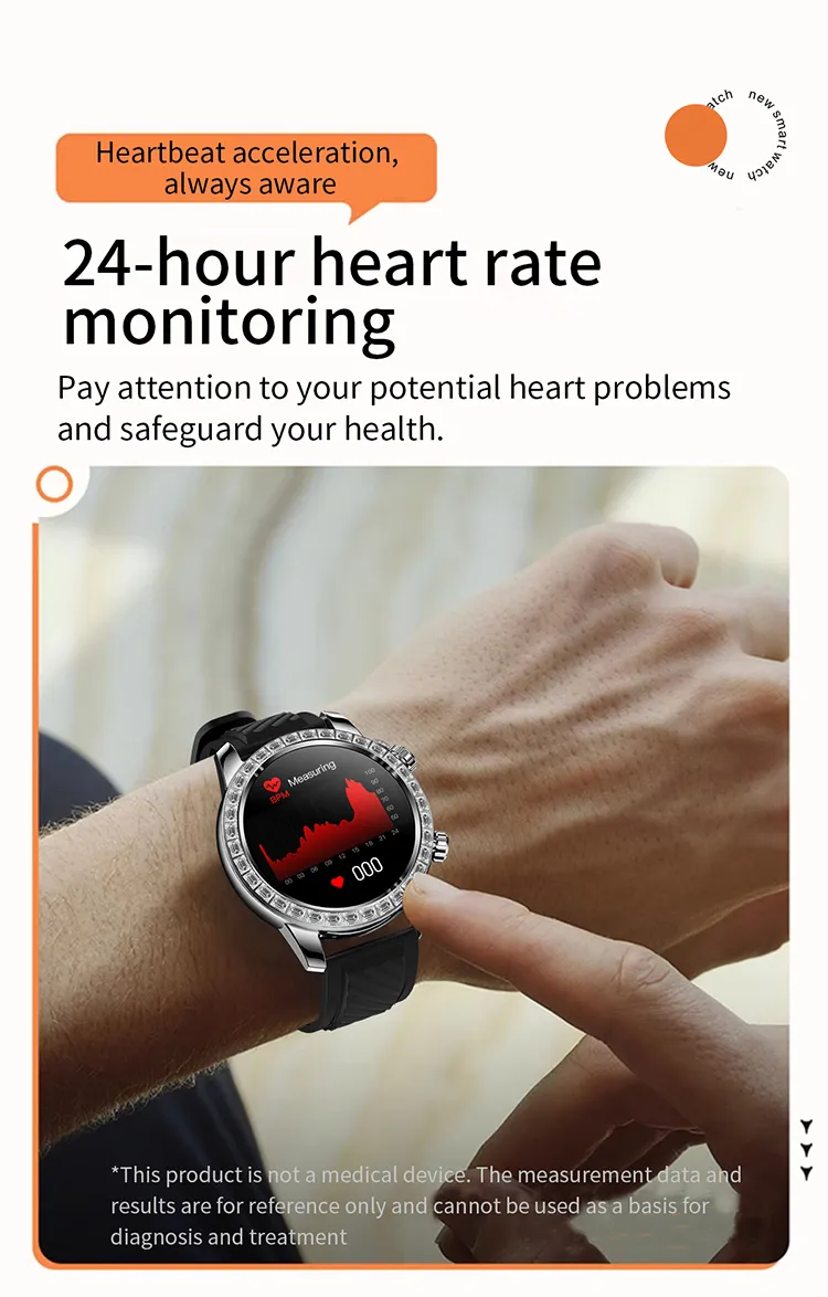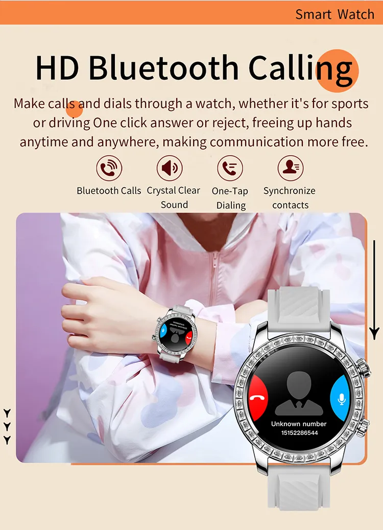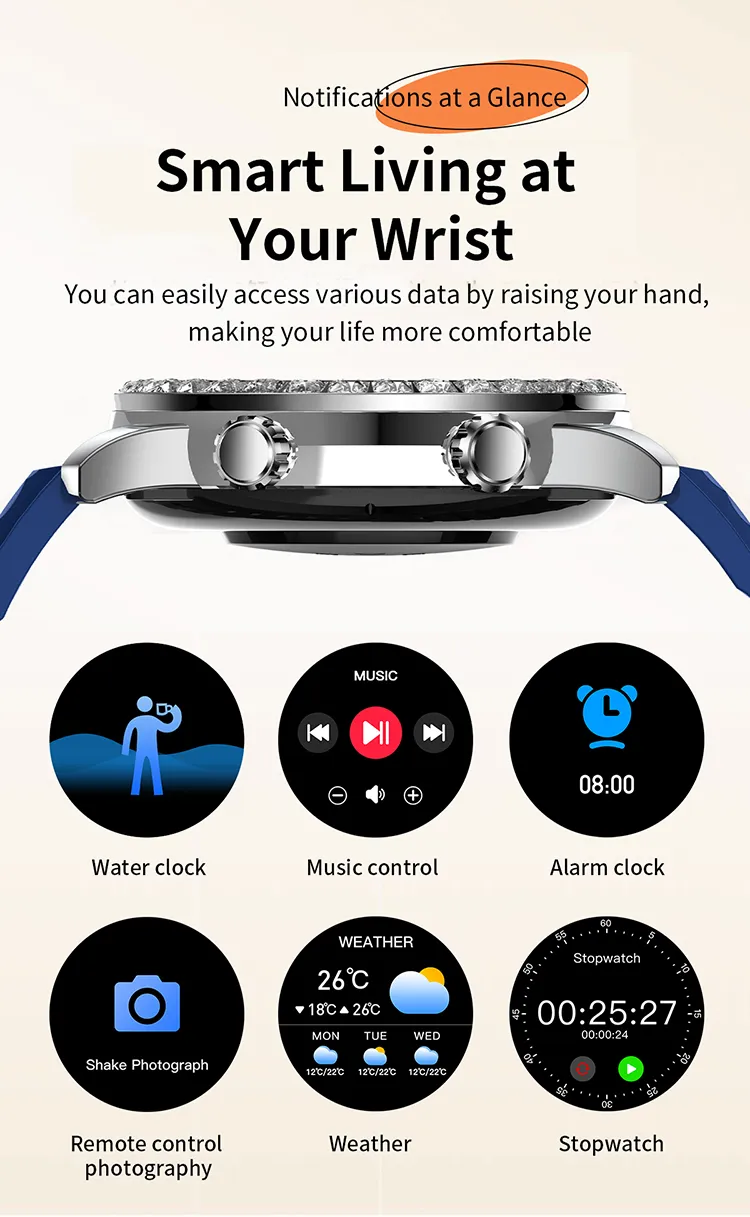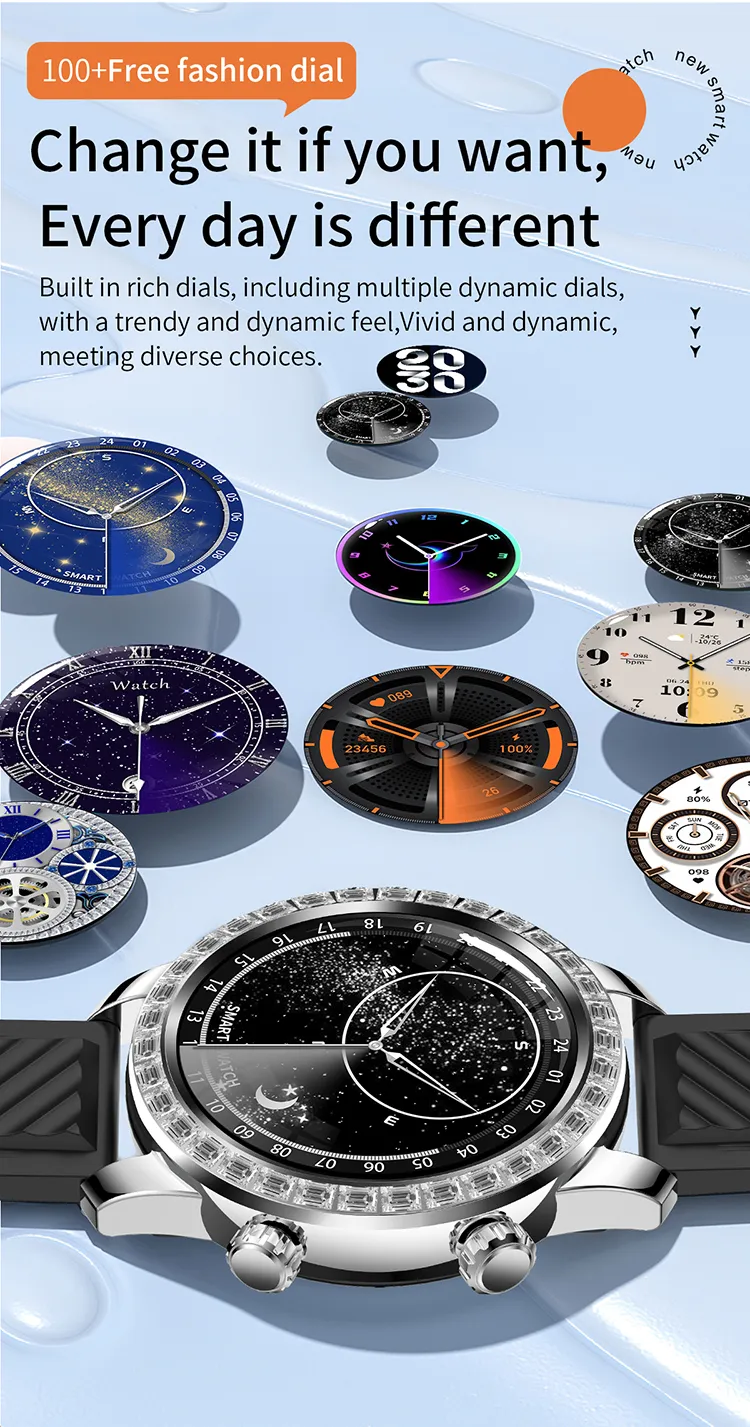 smartwatch offers a seamless blend of luxury and practicality. The eye-catching full diamond disc design adds a touch of sophistication,