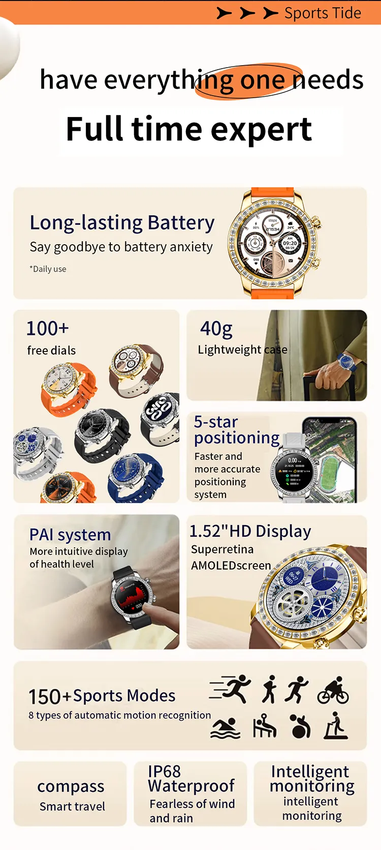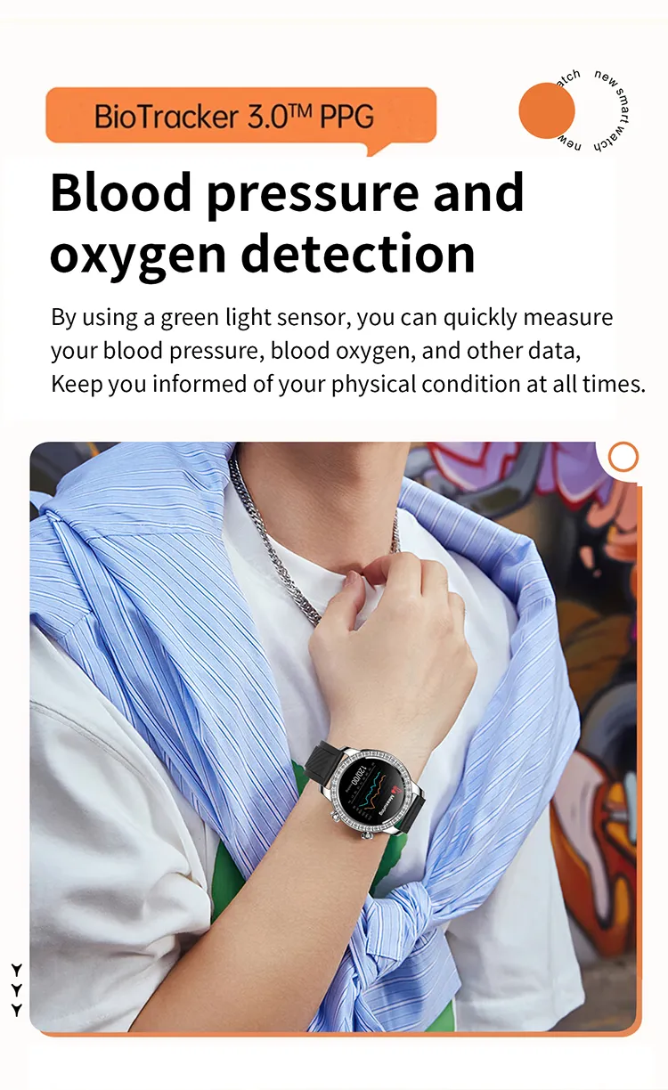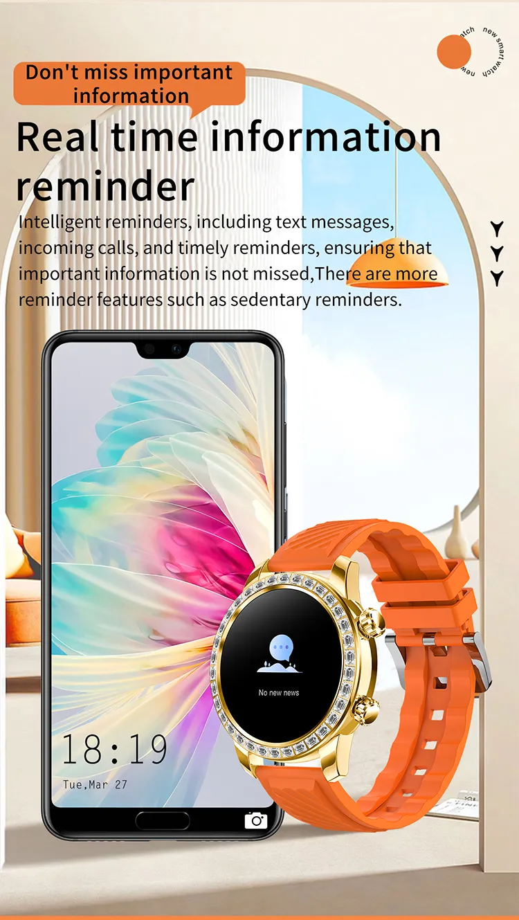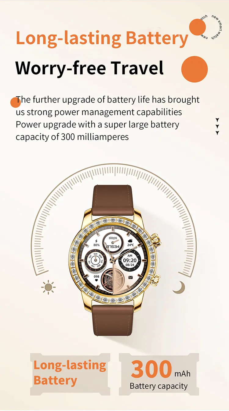 smartwatch offers a seamless blend of luxury and practicality. The eye-catching full diamond disc design adds a touch of sophistication,