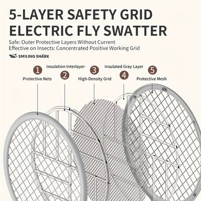 The SMILING SHARK Electric Fly Swatter is the ideal tool for pest control at home, in the office, or outdoors. Featuring a 3-in-1 bug zapper racket with a purple trap lamp, a 5-layer safety mesh, and a USB rechargeable battery, this portable and user-friendly device provides reliable protection against flying insects. Whether you're relaxing on your patio, camping, or trying to keep your home pest-free, the SMILING SHARK Electric Fly Swatter ensures that you can enjoy a comfortable, insect-free environment.