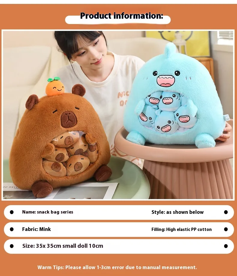 The Snack Bag Capybara Doll Decompression Plush Toy Pillow seamlessly blends style with functionality, offering a product that is both aesthetically pleasing and highly practical. Whether you prioritize decor, comfort, or organization, this plush toy meets all your needs in one charming package.