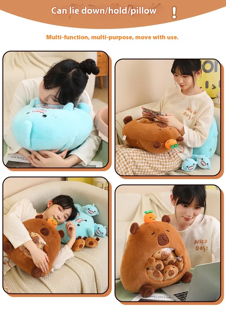 This delightful plush toy pillow makes a perfect gift for anyone who loves cute and functional accessories. Whether it's for a child, a friend, a family member, or a coworker, the Capybara Doll is a thoughtful present that brings joy and comfort. Its universal appeal makes it suitable for birthdays, holidays, housewarmings, or just as a special treat.